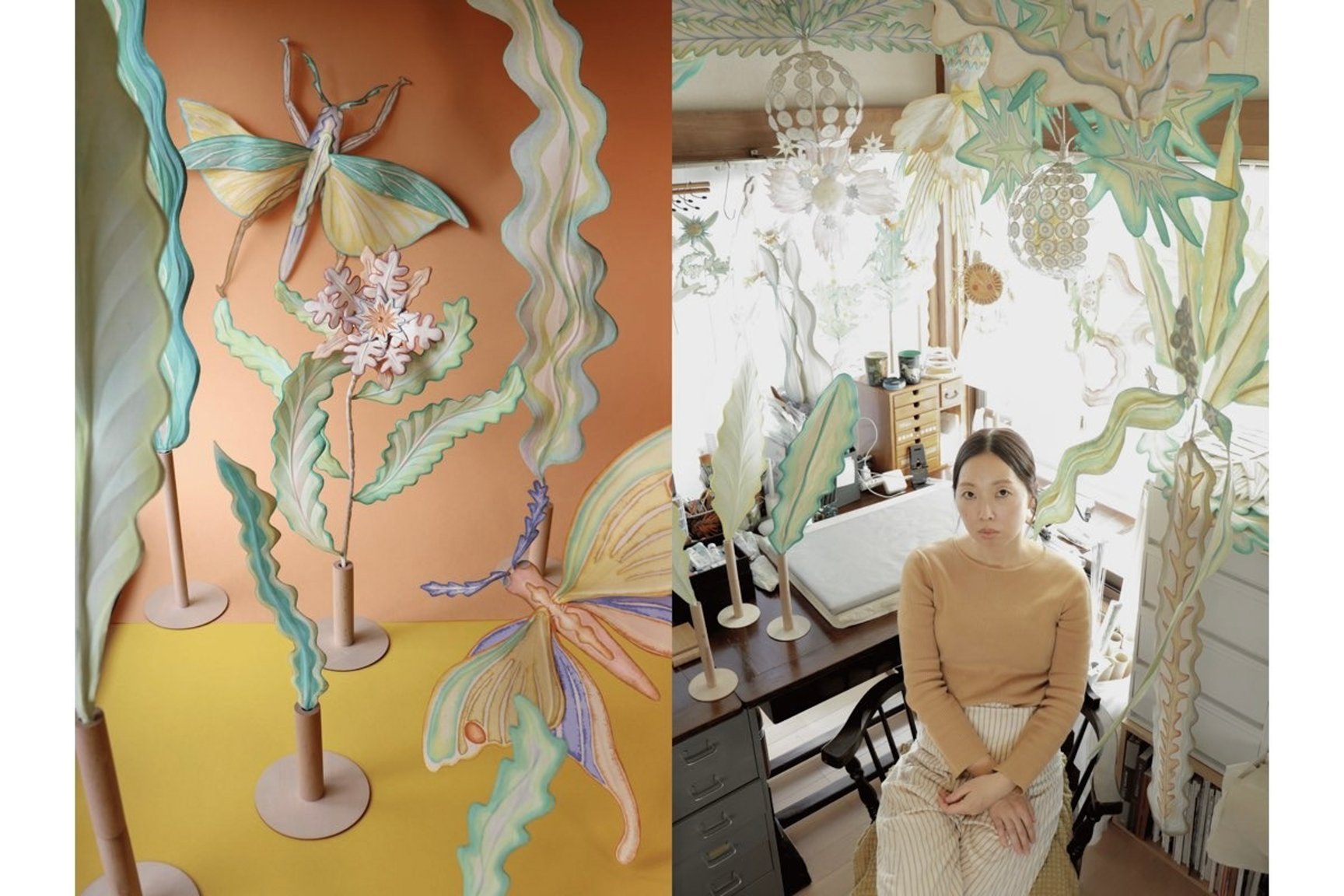本展では、ヨーロッパの伝統的なコテ技法を参照した布花表現を軸に、花や虫、太陽といったモチーフを通してミクロとマクロの関係性を探る新作の立体作品を披露。柔らかな布という素材を用いながら、精緻で緊張感のある造形によって、私たちの存在のスケールを静かに問いかける。