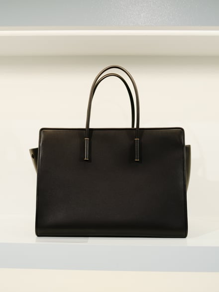 また、ルイーズによる新バッグ「バーバラ」(115万5000円)が先行販売アイテムとして登場。しなやかなスクエアパネルを採用し、ソフトな触感でありながら構築的な印象を兼ね備える。チューブ状のミニマルなハンドルは、さりげない金属製のパーツとともに固定。折り畳める構造のパネルとジップクロージャーを取り入れ、機能美とエレガンスを融合した。