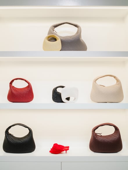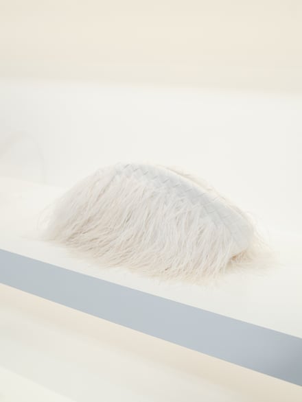 ポップアップ限定アイテムとして、波に着想した有機的なフォルムが特徴のバッグ「オンダ」を発売。幅約1cmのレザーフェットゥーチェをすべて手作業で編み込み、無駄のない曲線デザインに仕上げた。カラーバリエーションはブラック(91万3000円)とバーガンディ(91万3000円)を用意し、スモールサイズからはブラック(75万9000円)と、オーストリッチを施したホワイト(113万3000円)をラインナップしている。