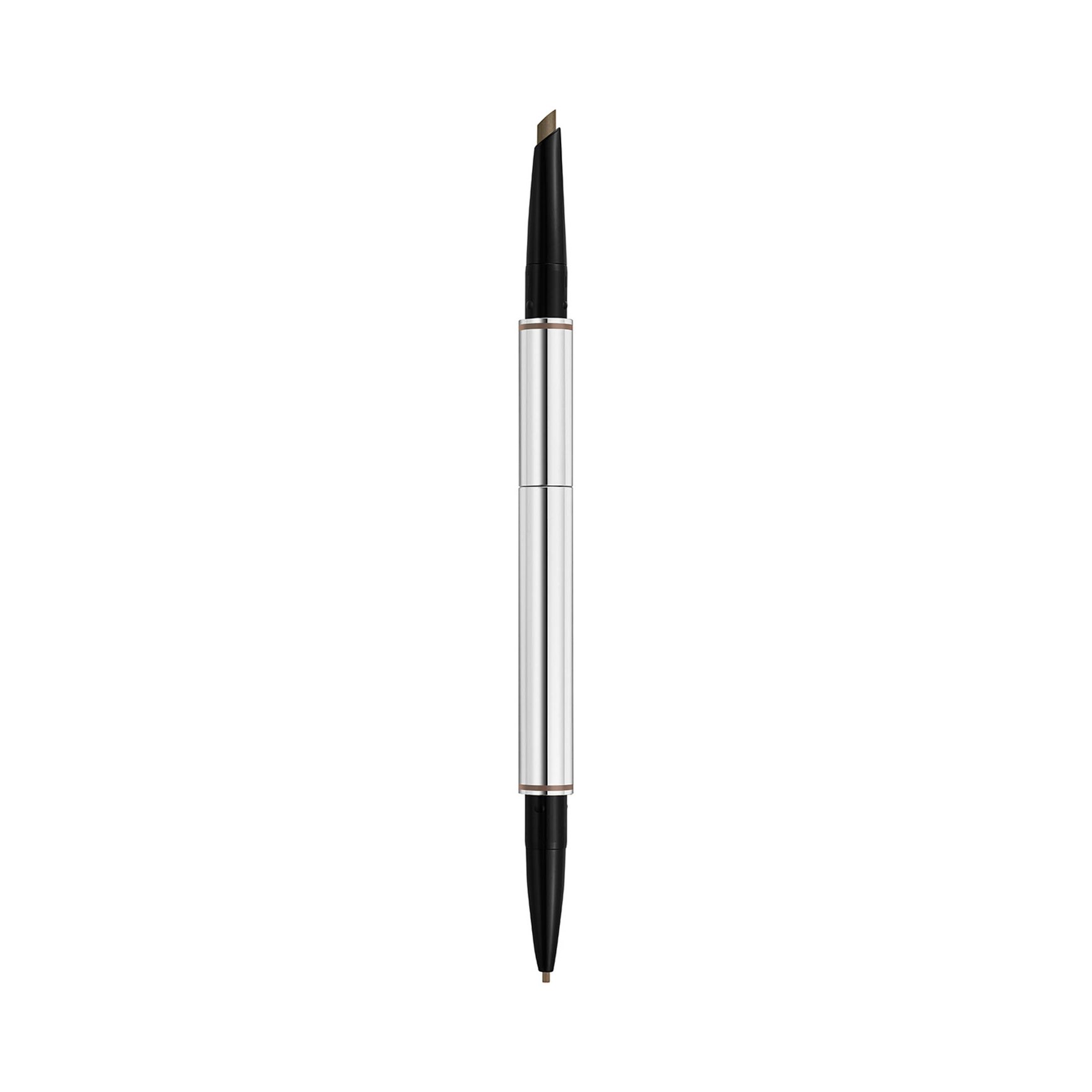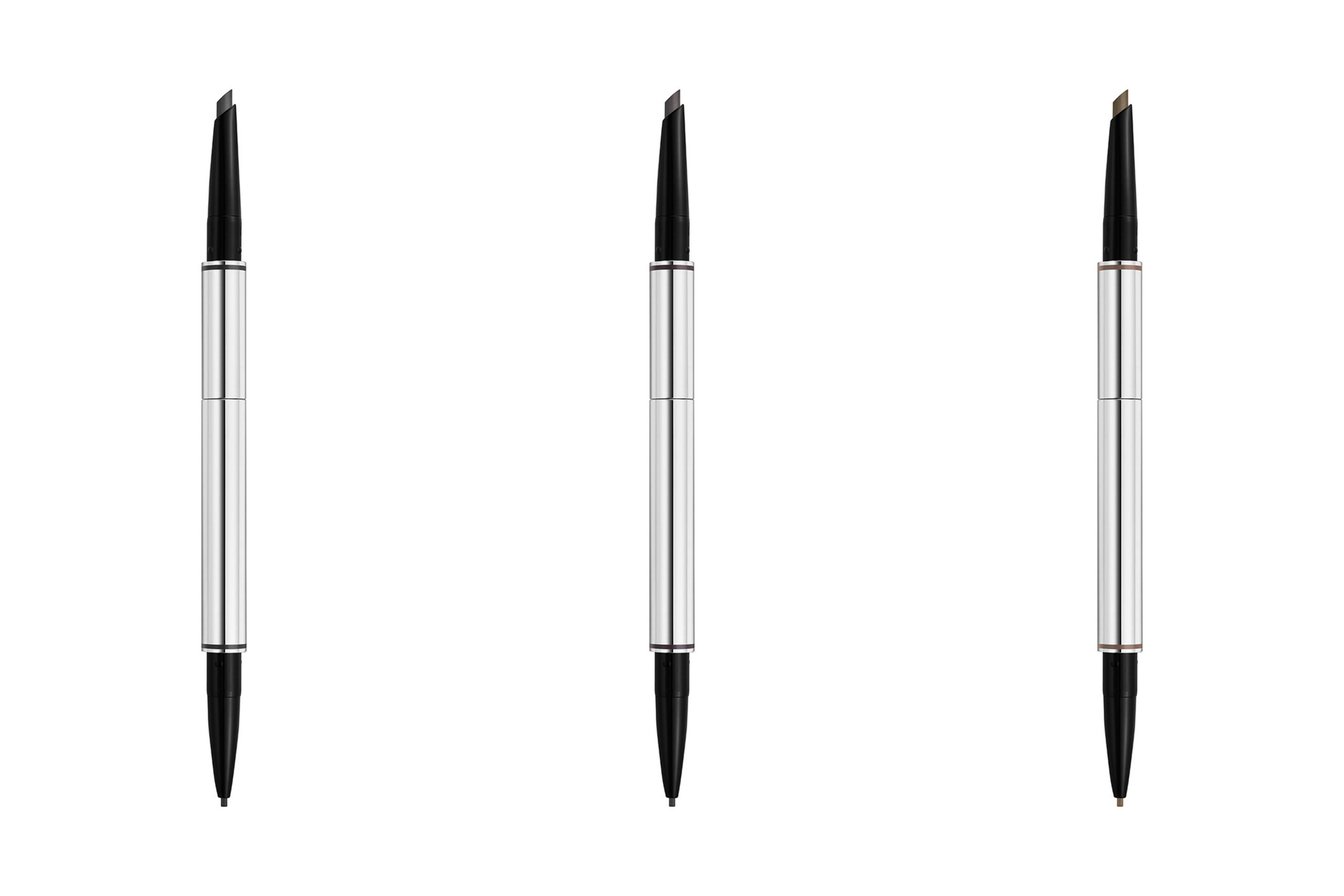 アイブロウペンシルはなぎなた型の芯とブランド史上最も細い1.5mmの芯のペンシルをセットにしたダブルエンドタイプ。極細芯のペンシルで眉毛の隙間を埋め、パウダリーに仕上がるなぎなたタイプのペンシルを重ねて理想の形に整えます。カラーラインナップは、ダークトーンの髪色に合う「01 グレー」、様々な髪色に使いやすい「02 ダークブラウン」、明るい髪色とマッチする「03 ライトブラウン」の3色。なぎなた型のペンシル、極細芯のペンシルは単品でも販売されます。