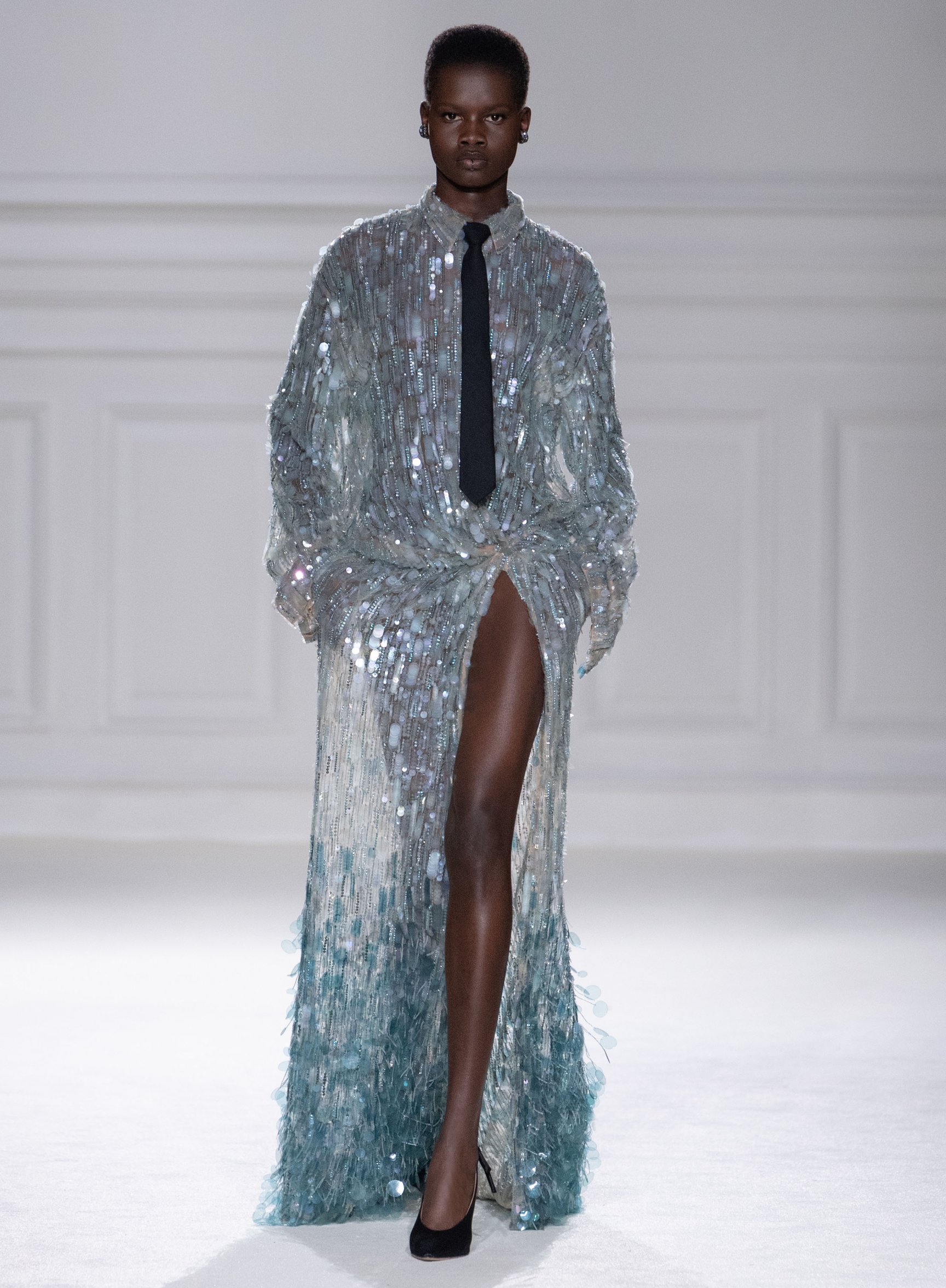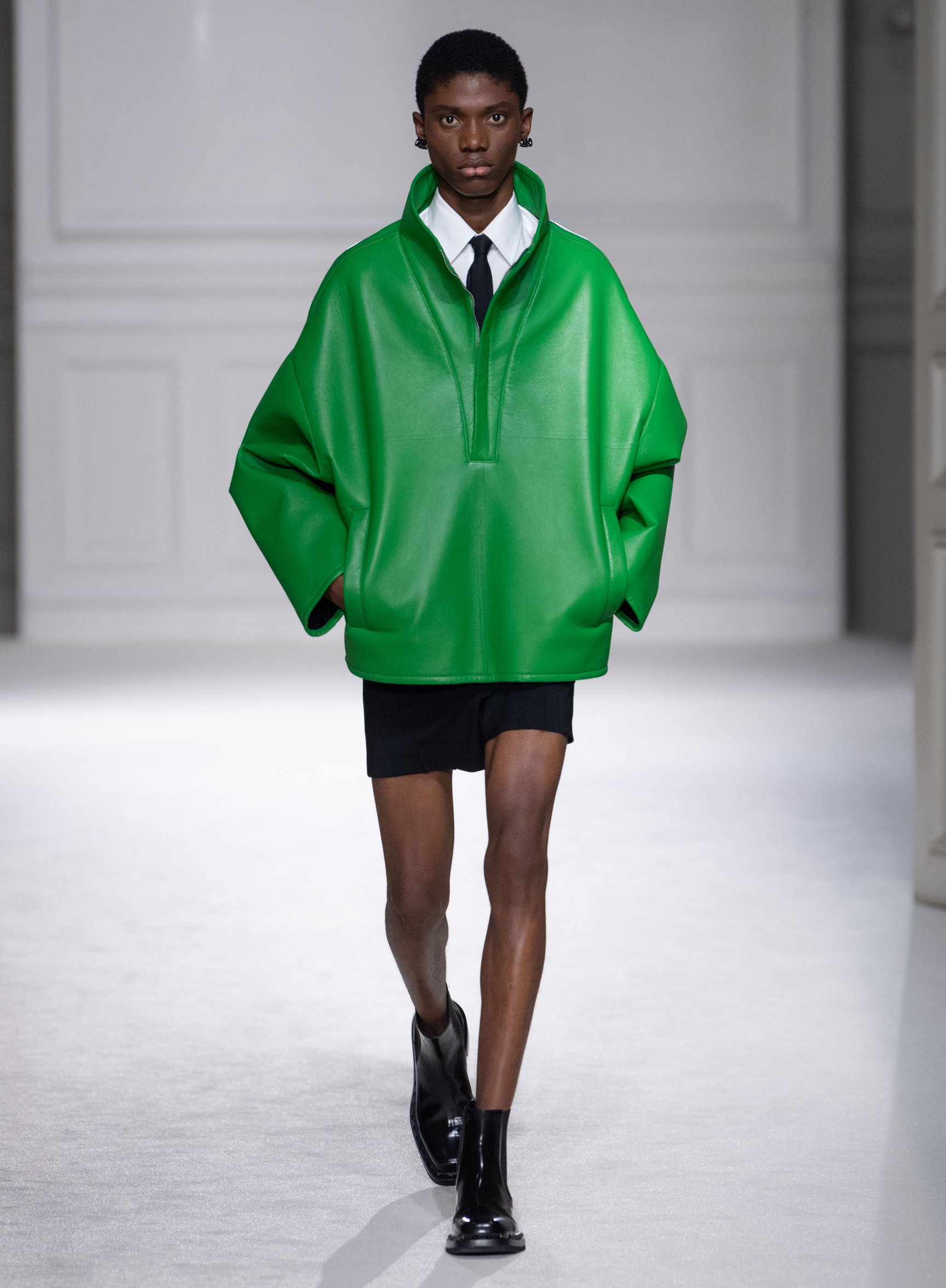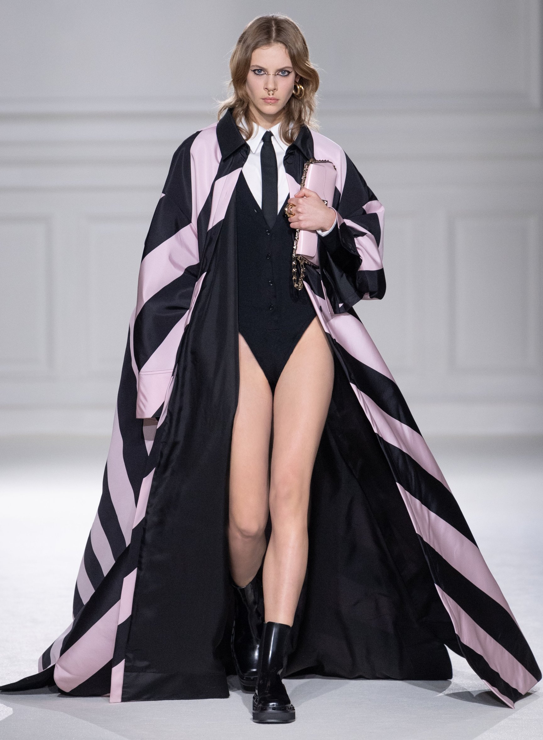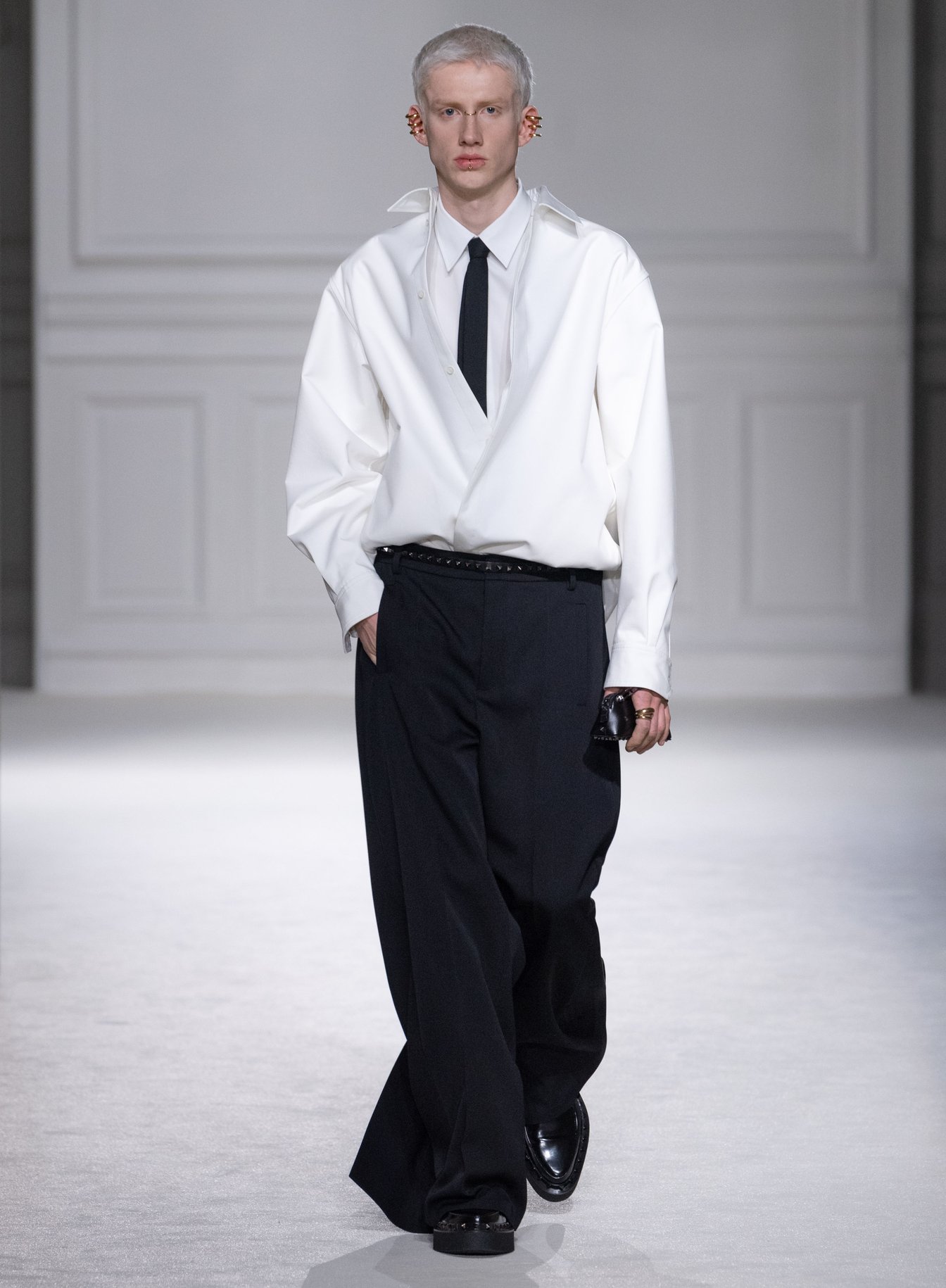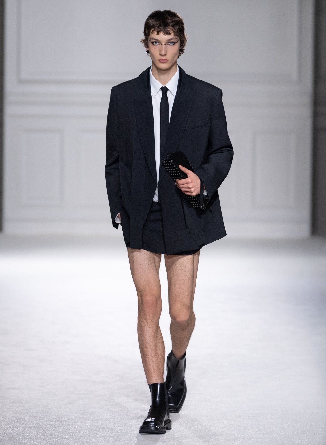 「ブラックタイ」を直訳すれば「黒いネクタイ」だが、ボウタイとタキシードといったフォーマルウェアを意味する男性のドレスコードでもある。ピッチョーリは今回、男らしさや正統性、ステータスなど様々な社会的意味を持つこの言葉を再定義。あらゆる制約を取り払い、現在と過去をミックス、パンクなアティテュードとメゾンのエレガントなカッティングを組み合わせた。