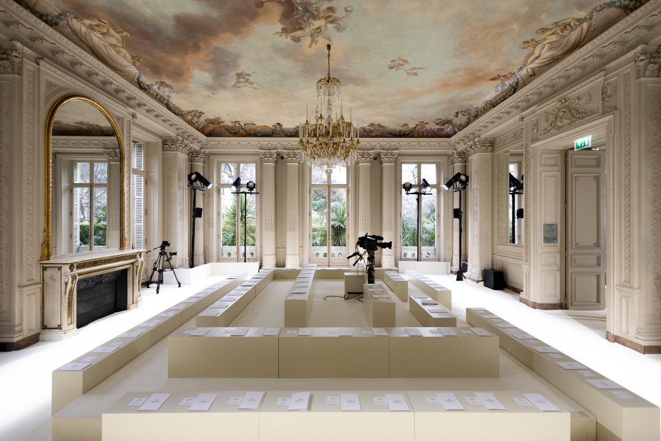 今回ヴァレンティノは、会場に設置された木製のベンチやランウェイ全体を覆うモケット(織物)をショー終了後に再利用するなど、環境への影響を最小限に抑える取り組みを実施。また、フランスの非営利団体「ラ?レゼルヴ?デザール(La Réserve des arts)」とのパートナーシップの継続も発表した。ショーで使用された繊維素材の一部を同団体に寄付し、クリエイティビティの好循環を永続的に生み出していく活動に役立てていくという。