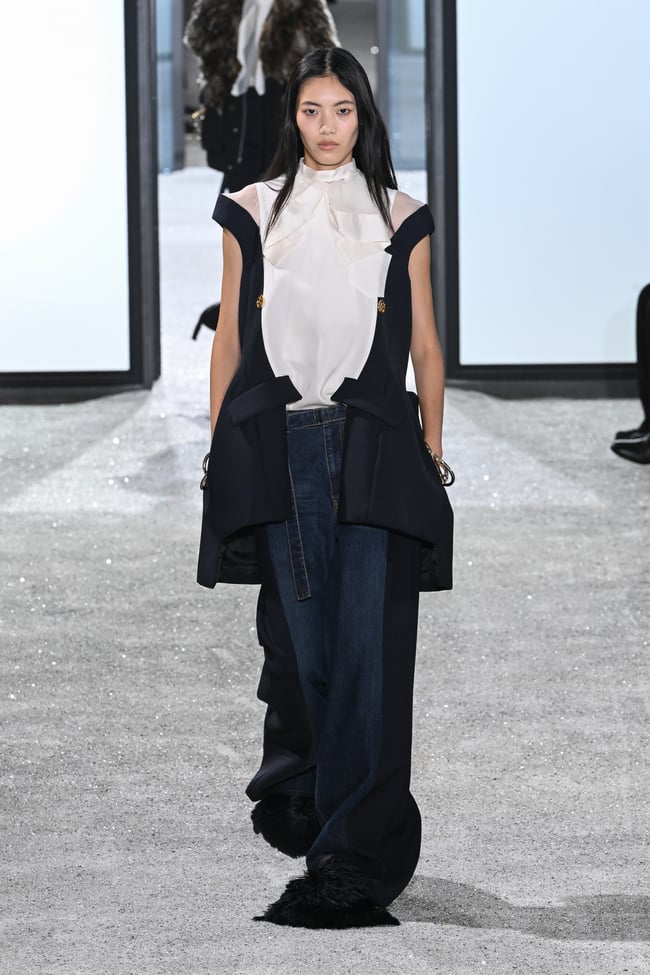 新たなトレンドとして躍り出ている"ロマンティック"とは対照的に、ユーティリティスタイルが目を引いた「サカイ(sacai)」。