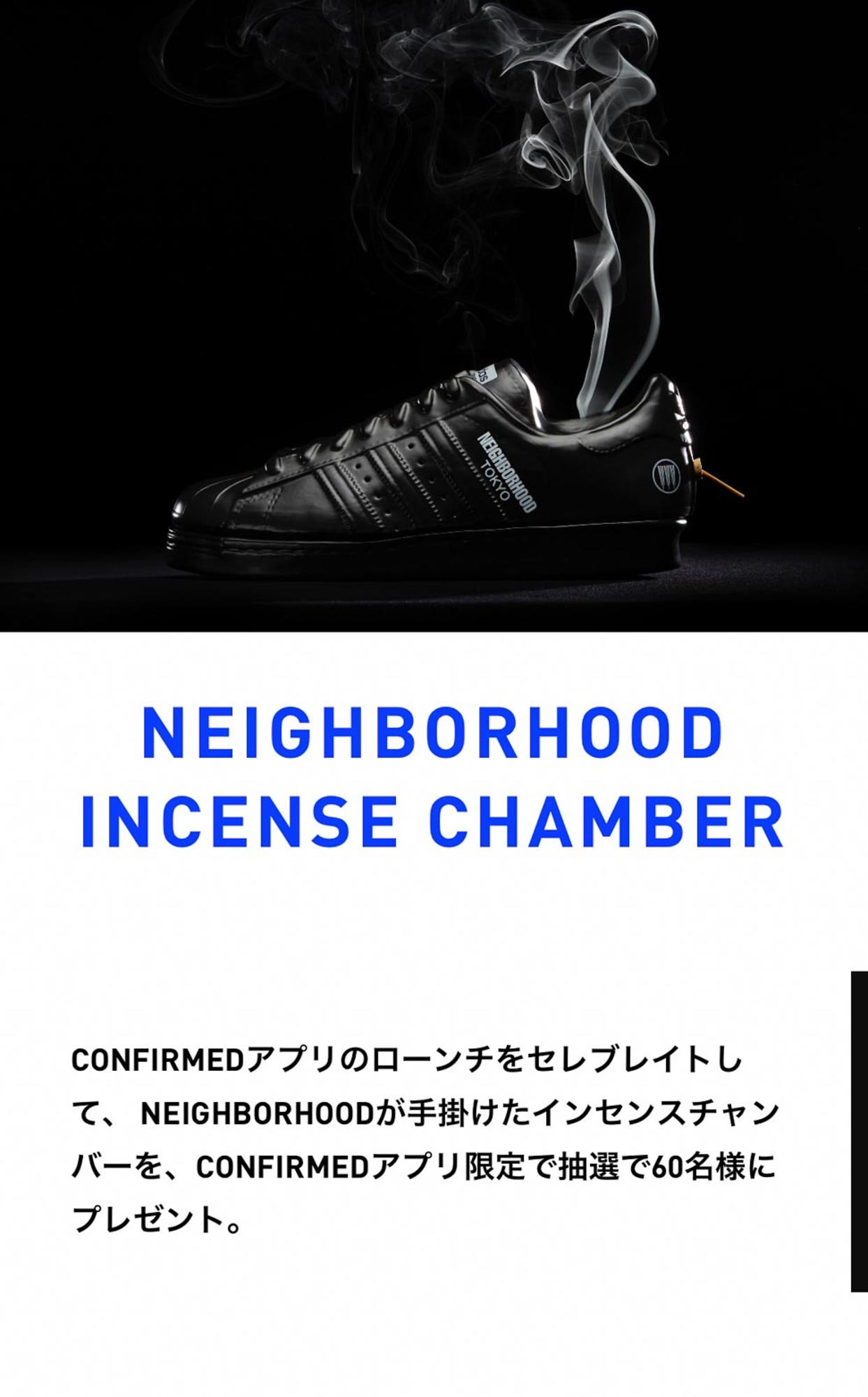 プレゼントキャンペーンや、イベントへの招待など限定のコンテンツも用意されています。ローンチを記念して、2018年に発売したネイバーフッドとのスーパースターをモチーフに製作したインセンスチャンバー(お香立て)が抽選で当たるプレゼントキャンペーンを実施。