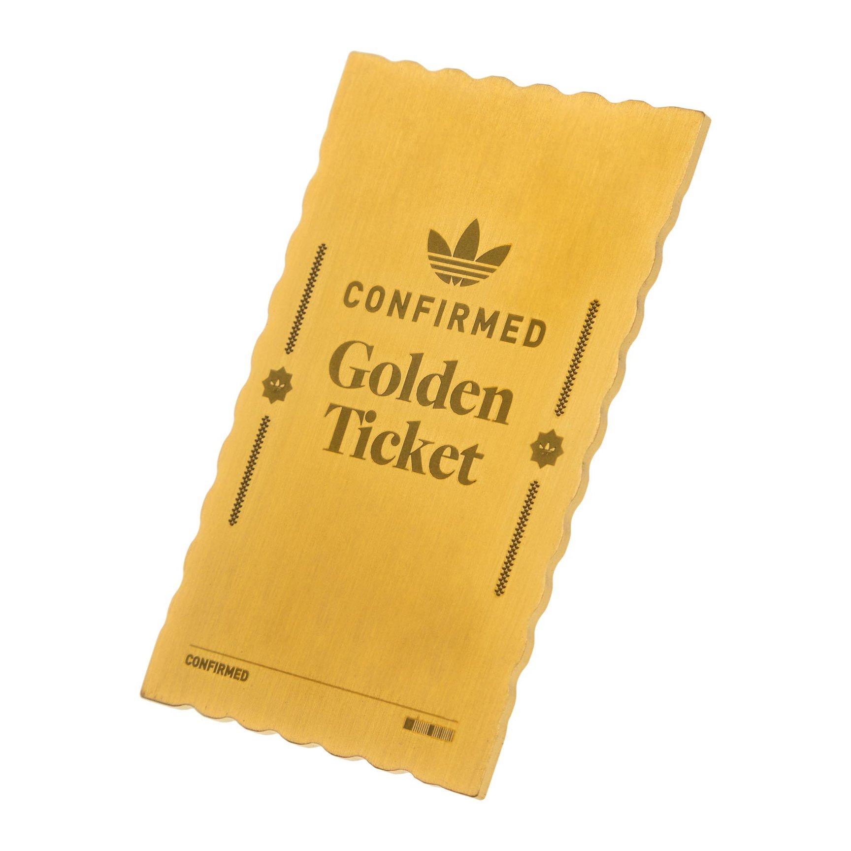 「CONFIRMEDアプリ」限定のadiCLUB会員特典として展開する「GOLDEN TICKET(ゴールデンチケット)」は、10月21日15時から11月20日23時59分の期間中「CONFIRMEDアプリ」で応募した抽選販売する全ての商品を確実に購入することができるという夢のような権利。当選者には「GOLDEN TICKET」の実物も贈られます。