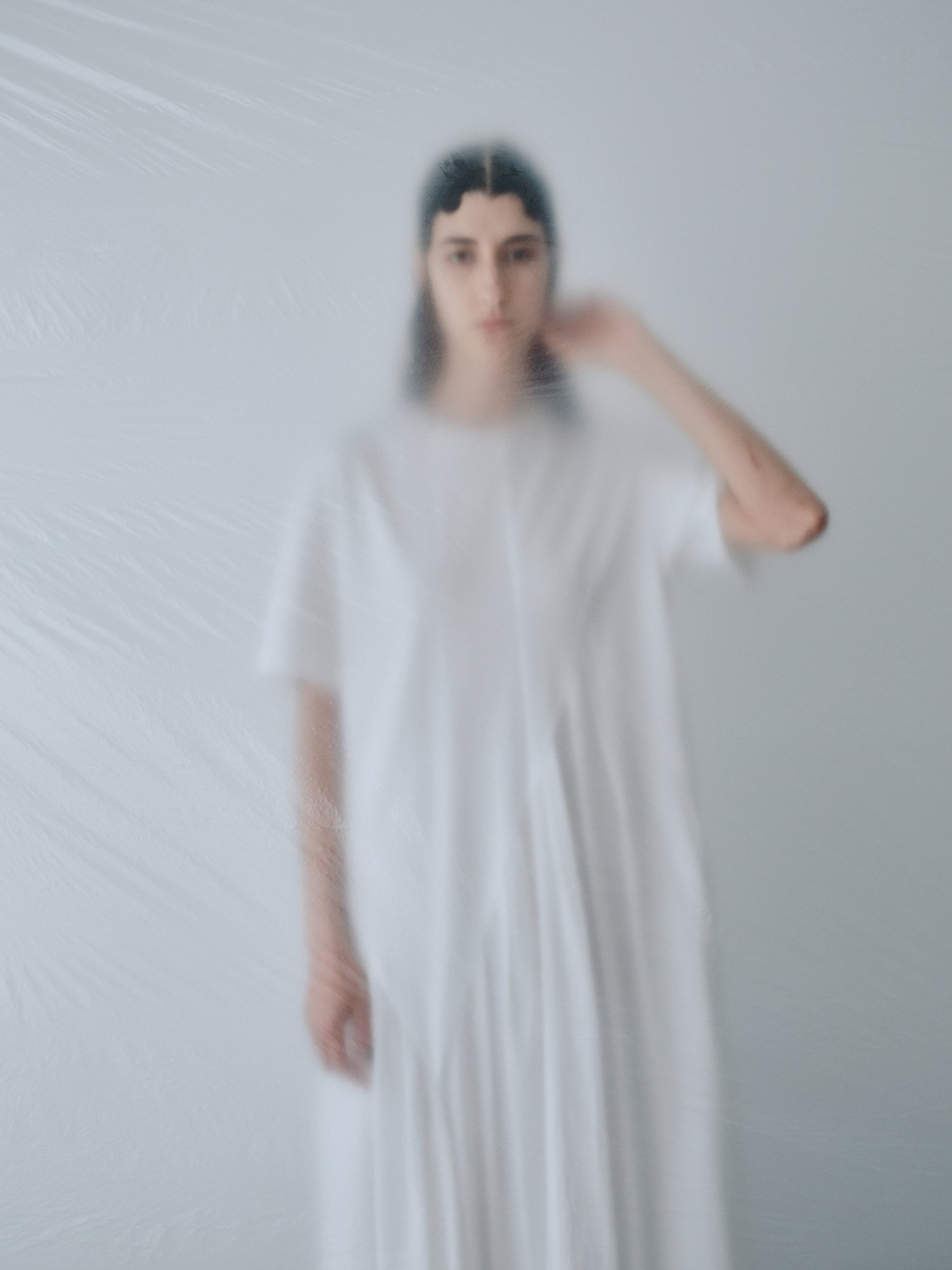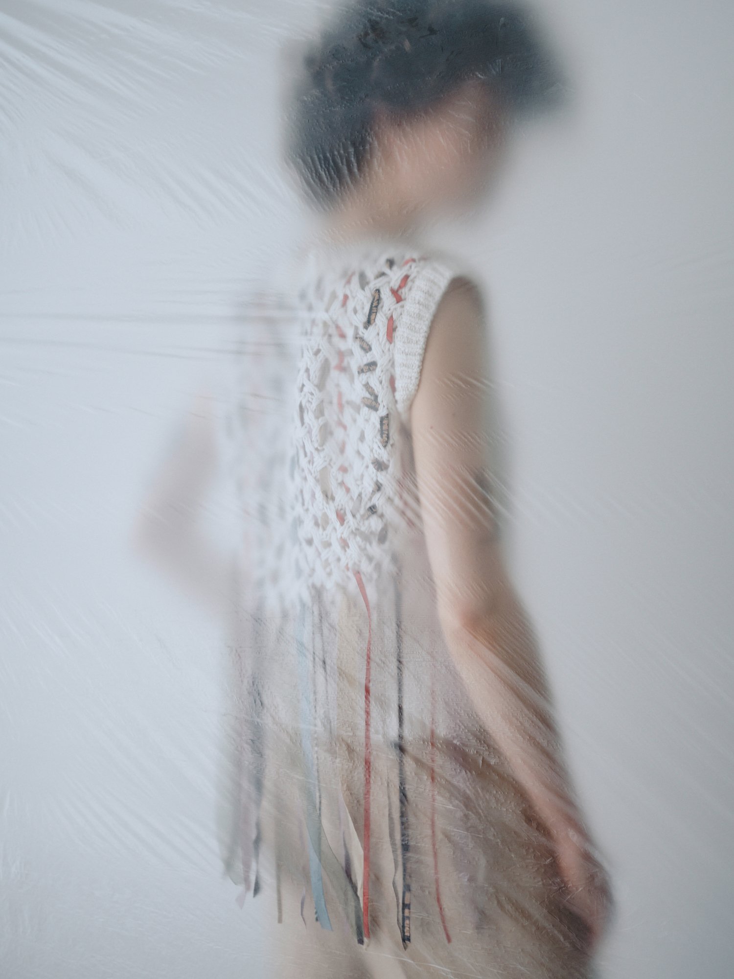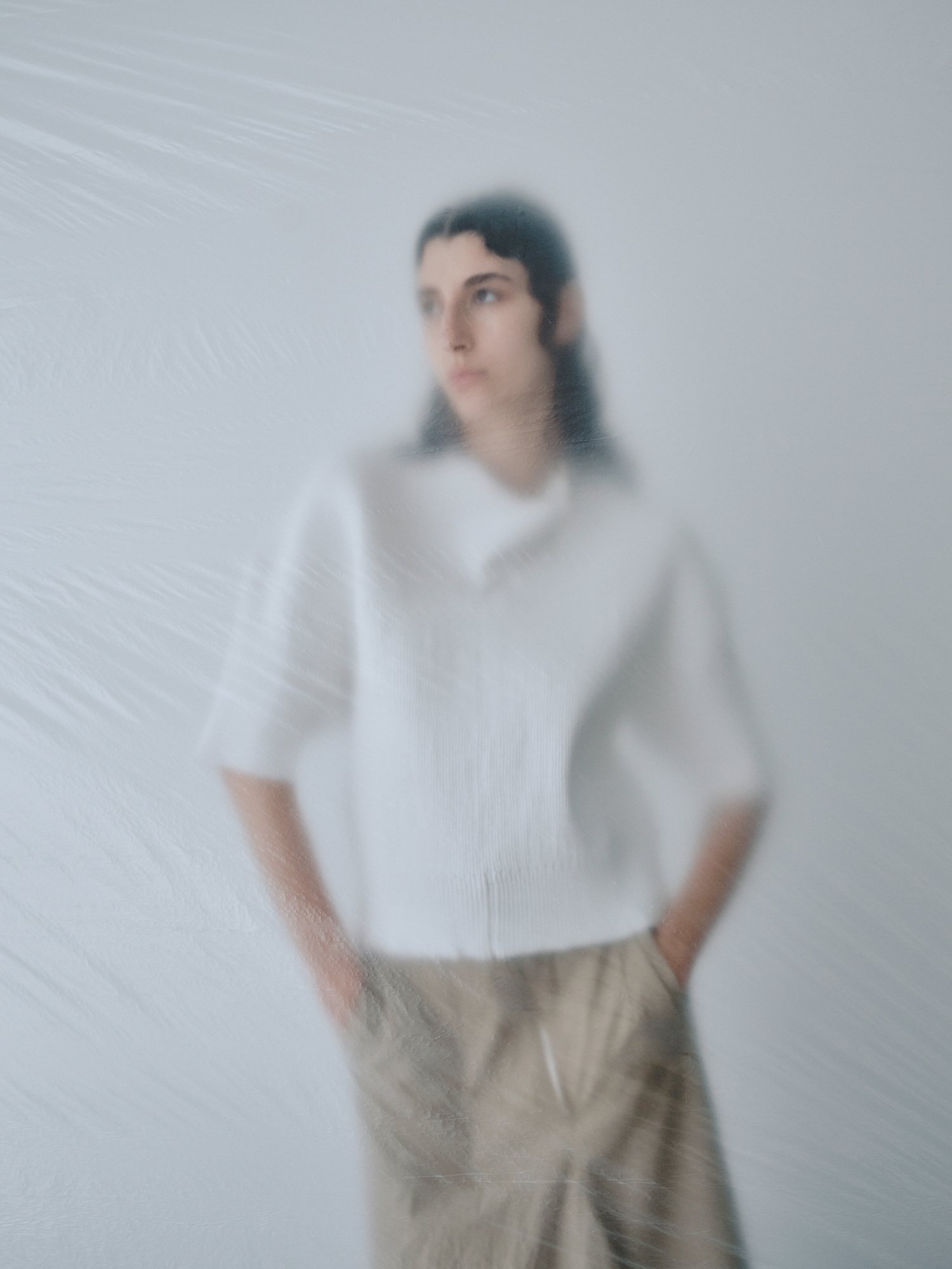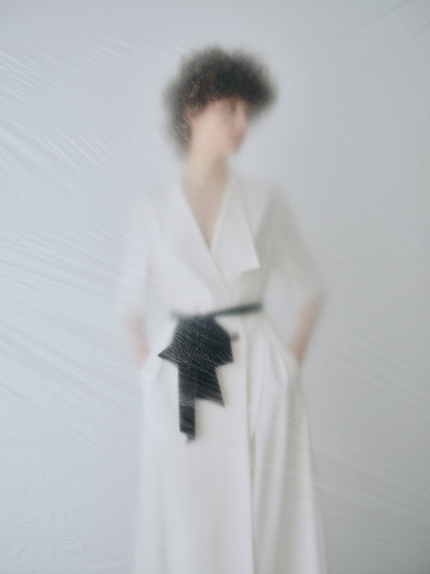 この思いが、コレクションの創造性を音楽や写真へと繋げる今回の試みに繋がった。中はチェリストの河内ユイコにコレクションの背景やインスピレーションを説明し、楽曲制作を依頼。リヒターに関する専門知識はなかった河内だが、中の熱意あるレクチャーから受けた感情を音で表現した。「言葉にするのは得意ではない」彼女は、当初の意見交換では感じたことを上手く伝えきれなかったという。その悔しさをバネに楽器と向き合う中で、「パラパラパラっとアイデアが浮かび、パズルのようにはまっていった」と、感覚的なプロセスでコレクションの印象を音へと昇華させたことを明かした。また、「音は言葉を介さず、すっと人の心に届く。だからこそ、発信するものには責任を持たないといけない」と、音の影響力と作り手の責任についても言及した。