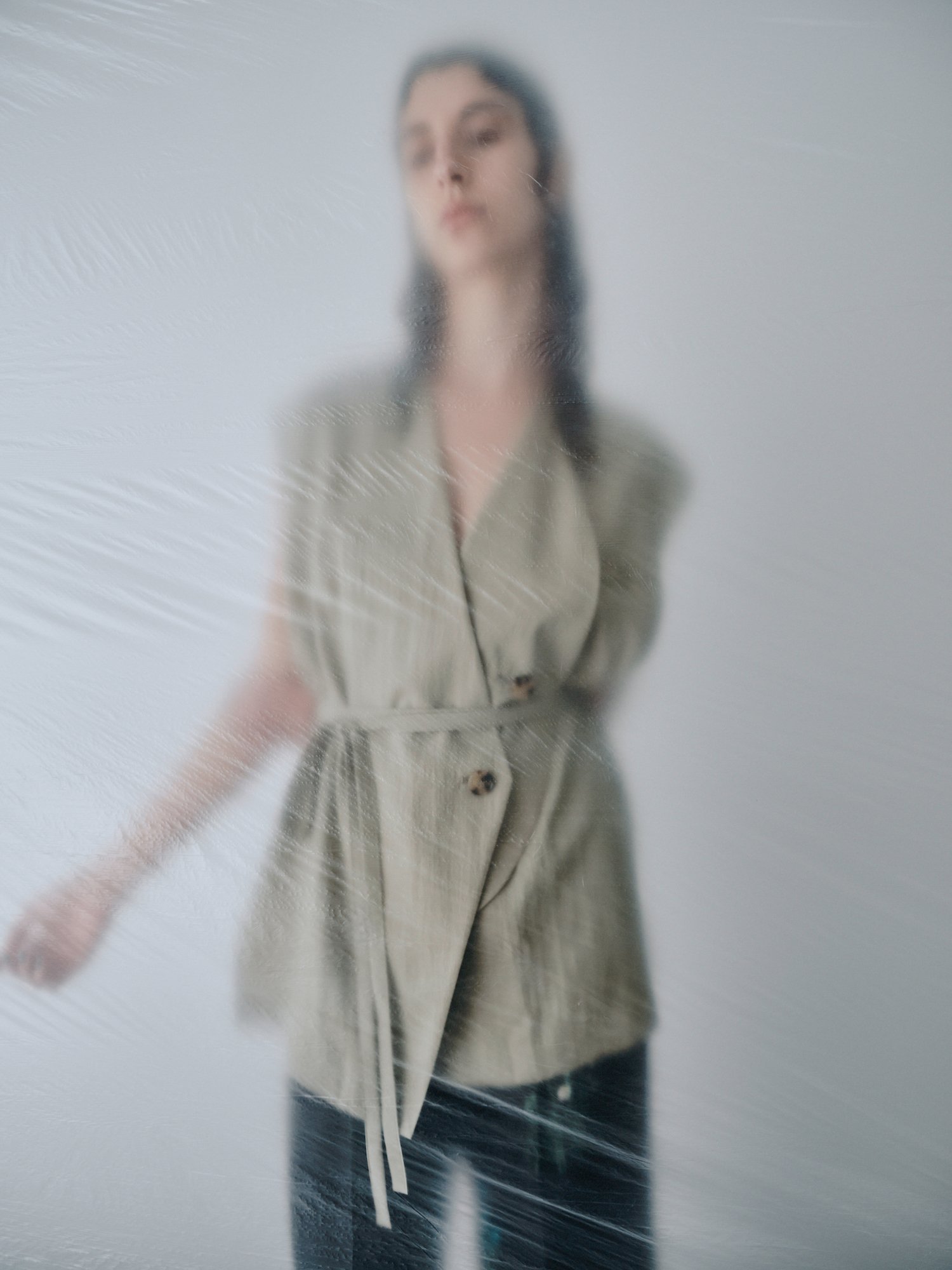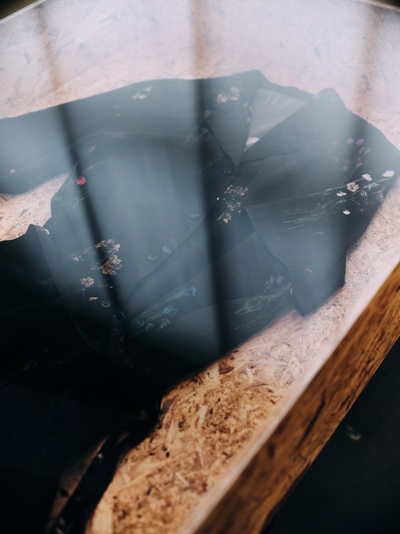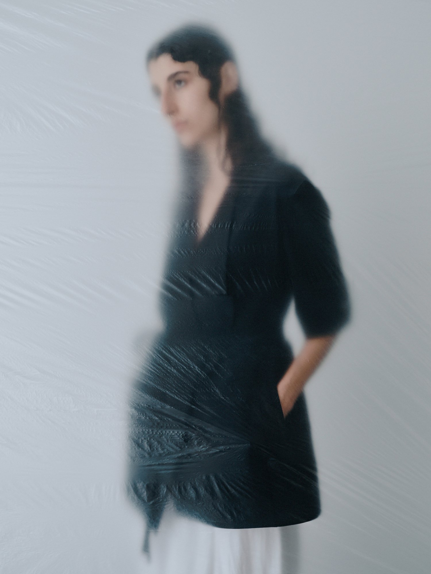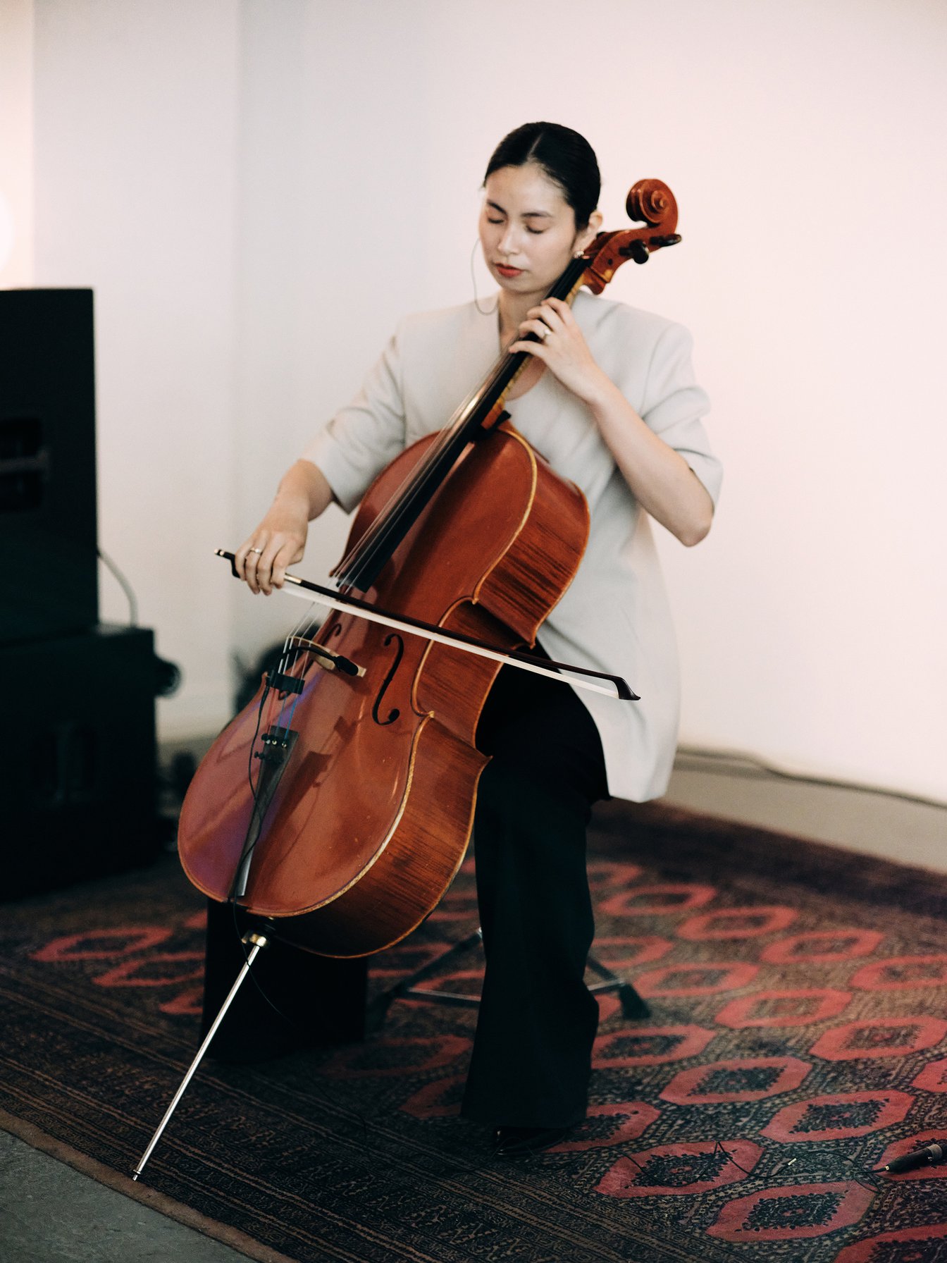 この思いが、コレクションの創造性を音楽や写真へと繋げる今回の試みに繋がった。中はチェリストの河内ユイコにコレクションの背景やインスピレーションを説明し、楽曲制作を依頼。リヒターに関する専門知識はなかった河内だが、中の熱意あるレクチャーから受けた感情を音で表現した。「言葉にするのは得意ではない」彼女は、当初の意見交換では感じたことを上手く伝えきれなかったという。その悔しさをバネに楽器と向き合う中で、「パラパラパラっとアイデアが浮かび、パズルのようにはまっていった」と、感覚的なプロセスでコレクションの印象を音へと昇華させたことを明かした。また、「音は言葉を介さず、すっと人の心に届く。だからこそ、発信するものには責任を持たないといけない」と、音の影響力と作り手の責任についても言及した。