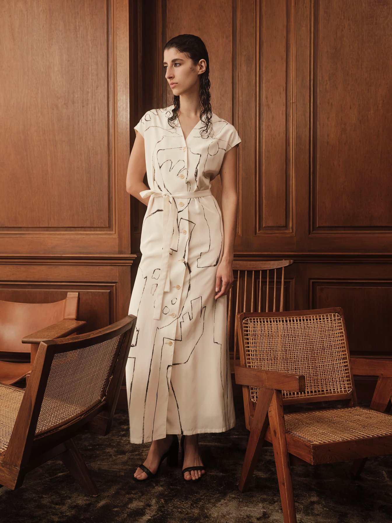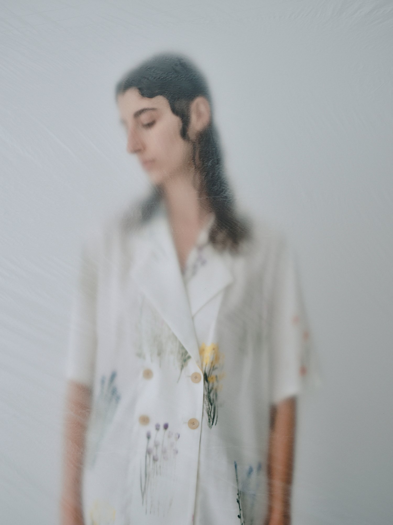 アキラナカのコレクションにも、この2つの概念が色濃く反映されている。花のグラフィックでは「描いては消す」「消すことで描く」手法で具象と抽象の境界を曖昧にし、削られた花々は現実と私たちを隔てる“シャイン”を象徴する。また、花、女性、音楽といったモチーフを、それぞれの美しさを尊重し等価に扱っている。