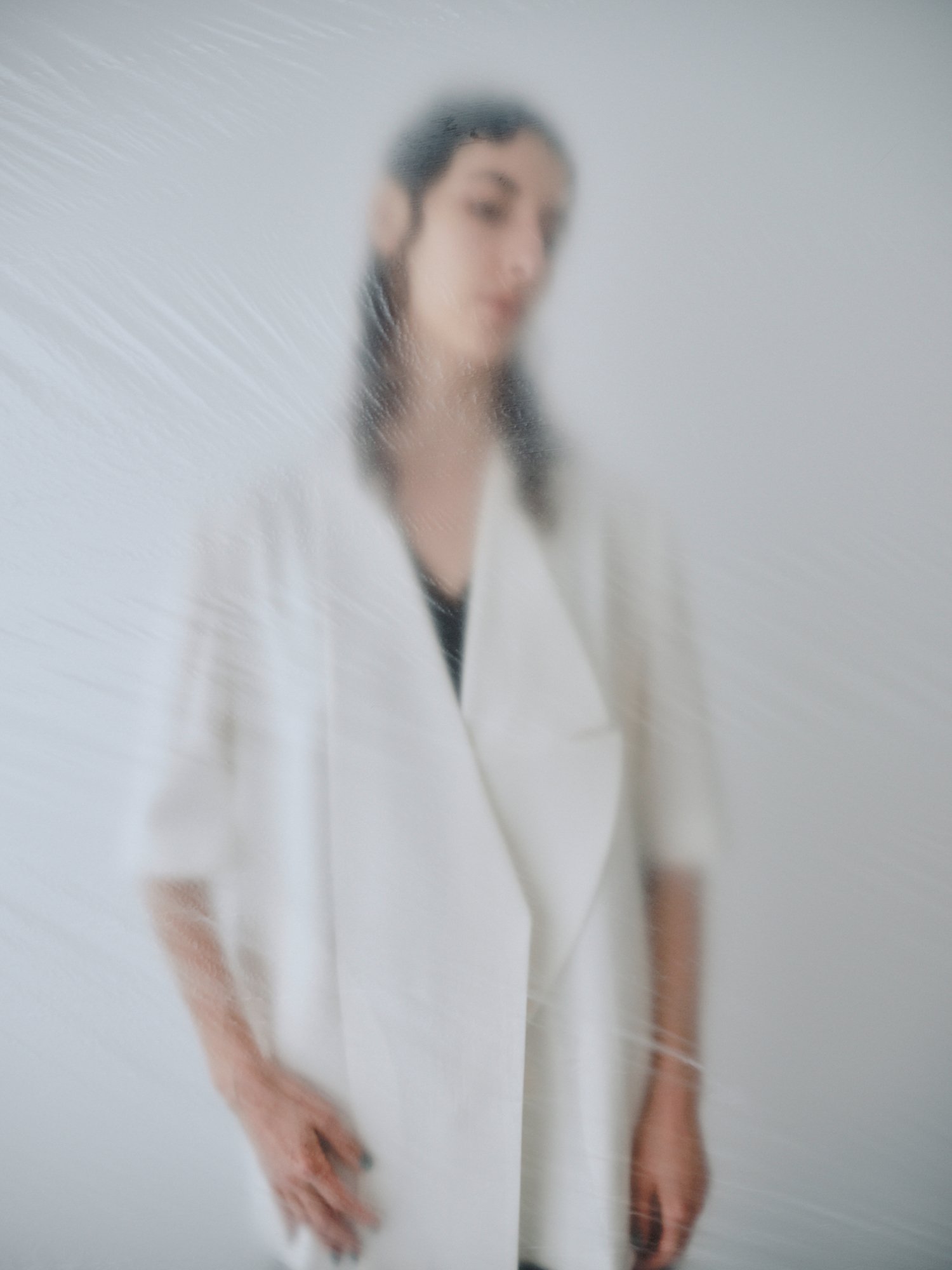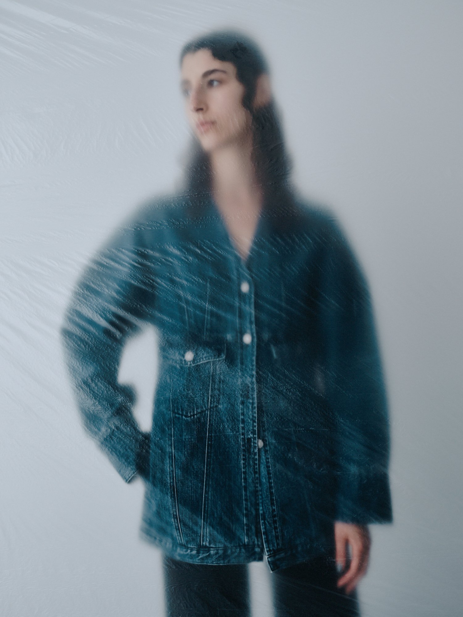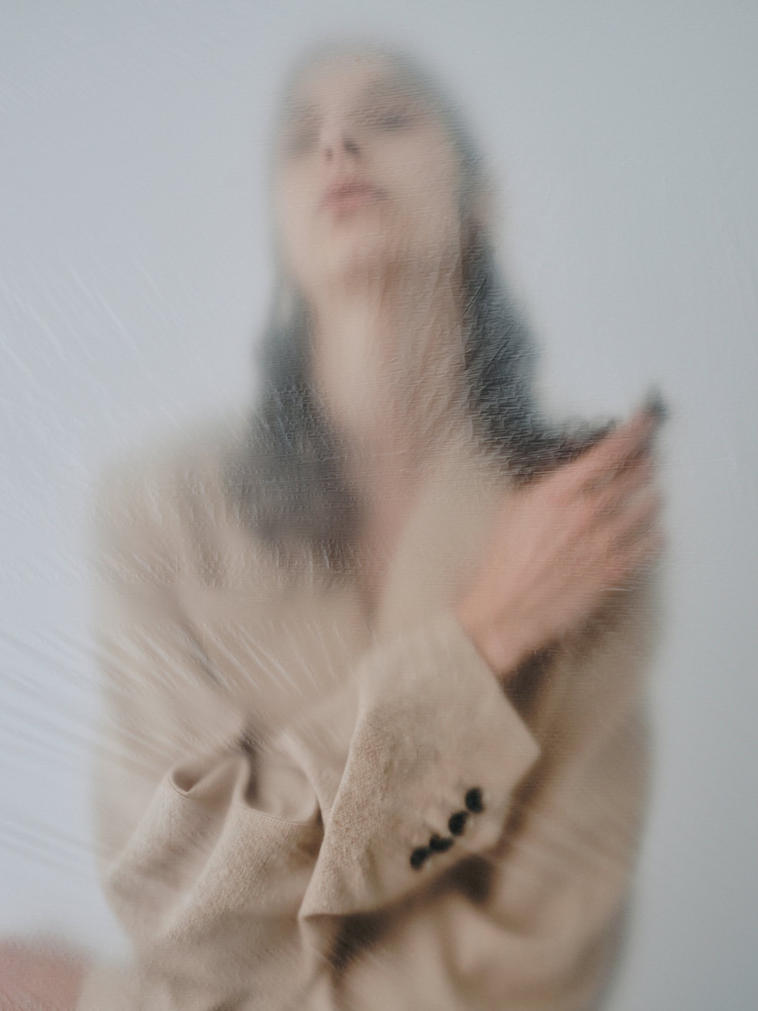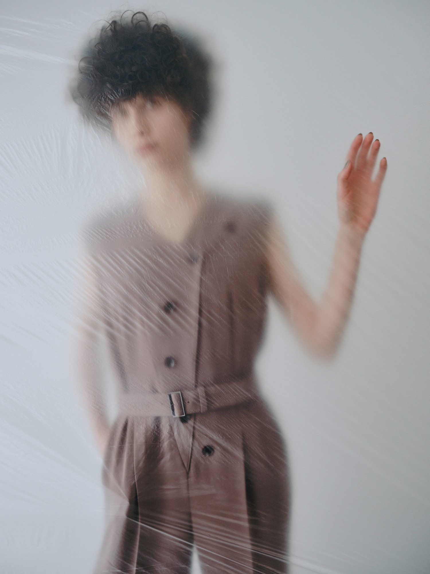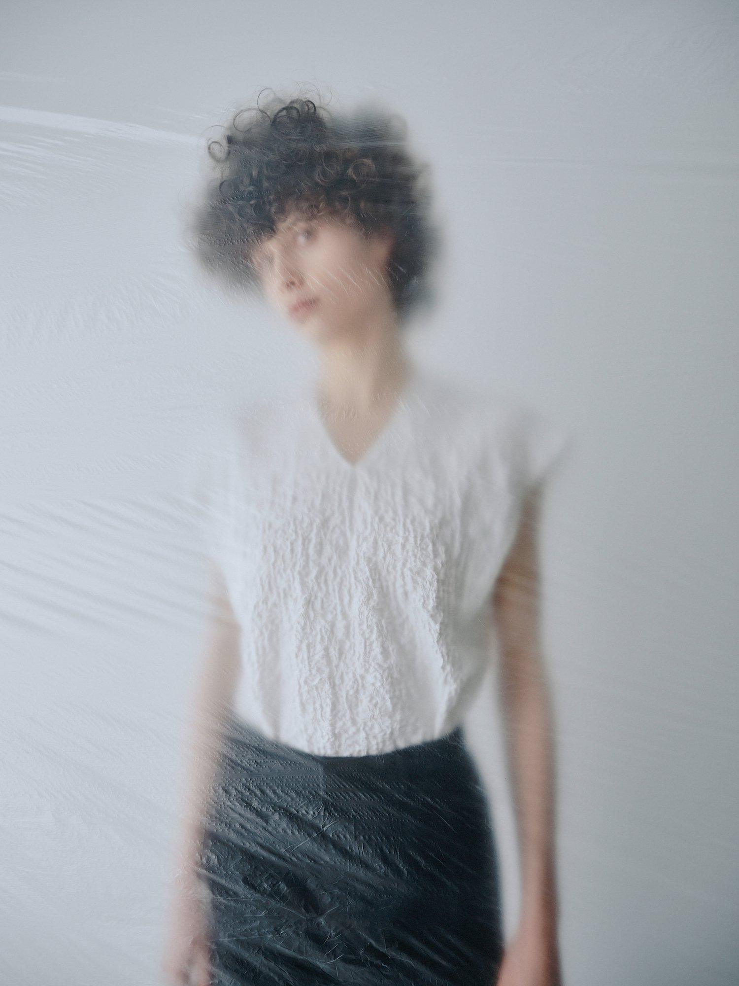イメージヴィジュアルでは、モデルとカメラの間にフィルムのレイヤーを挟み、視覚的にシャインを表現。フィルムの素材感やシワに焦点を合わせればモデルは背景となり、逆にモデルに意識を向けると、ブラーな人物像が浮かび上がり、ディテールの一部しか認識できないという、情報の受容に制限をかける視覚効果が生まれている。