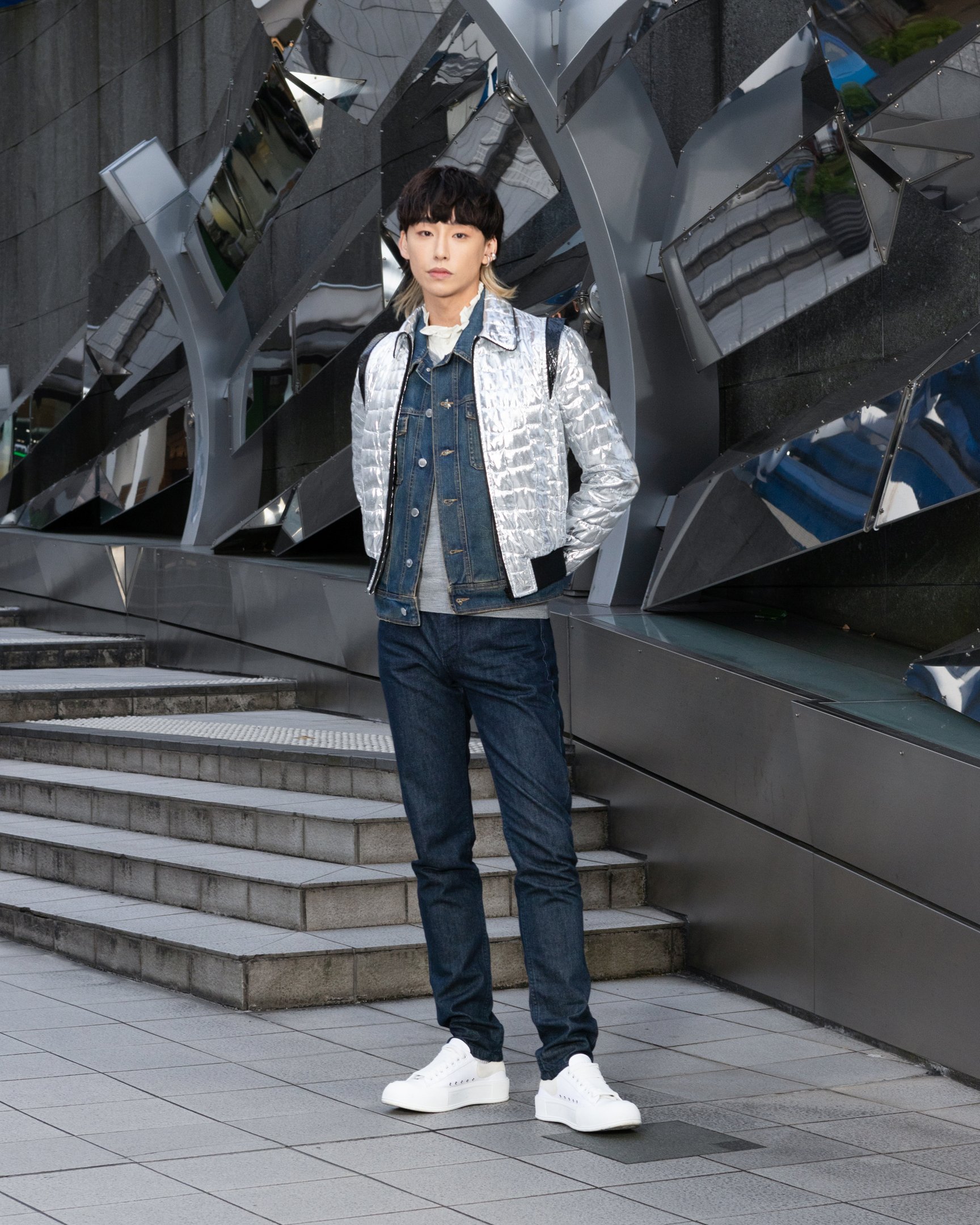 ジャケット:CELINE、デニムベスト:DIOR HOMME、シャツ:GalaabenD、デニム:CARVEN、スニーカー:ALEXANDER McQUEEN