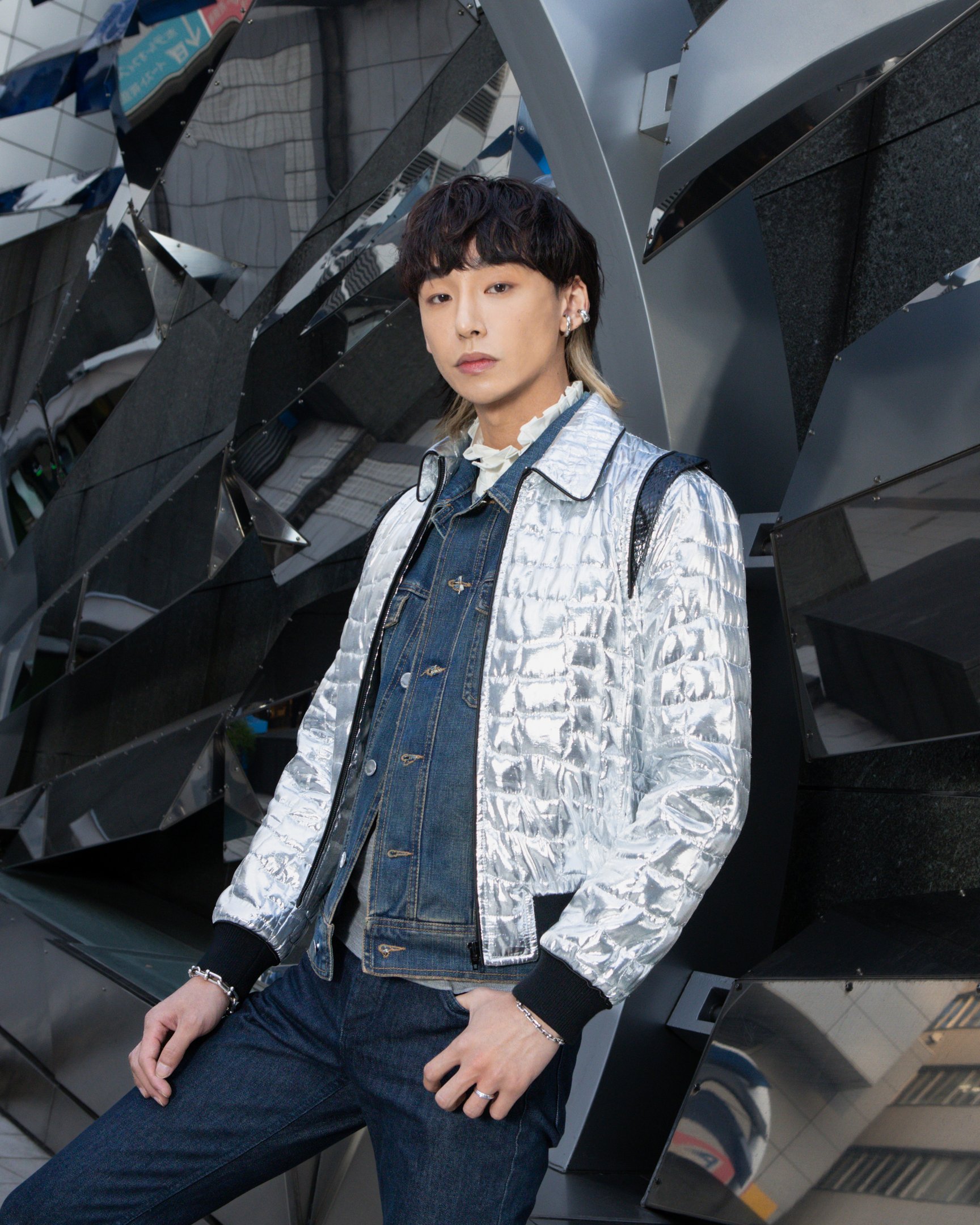 ジャケット:DIDU、帽子?トップス?パンツ?シューズ:Bershka、イヤーカフ:CAREERING ※イヤーカフのみリステアで購入。