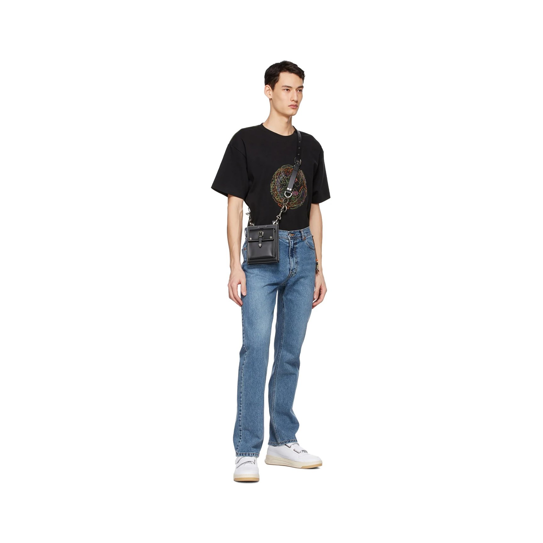 まずは毎日ヘビロテ間違いなしのシンプルなブラックTシャツをピックアップ。胸元のカラフルなプリントは、地球とスマイリーフェイスをテーマにしたモチーフで、身につければピースフルな気分になれそうですね。