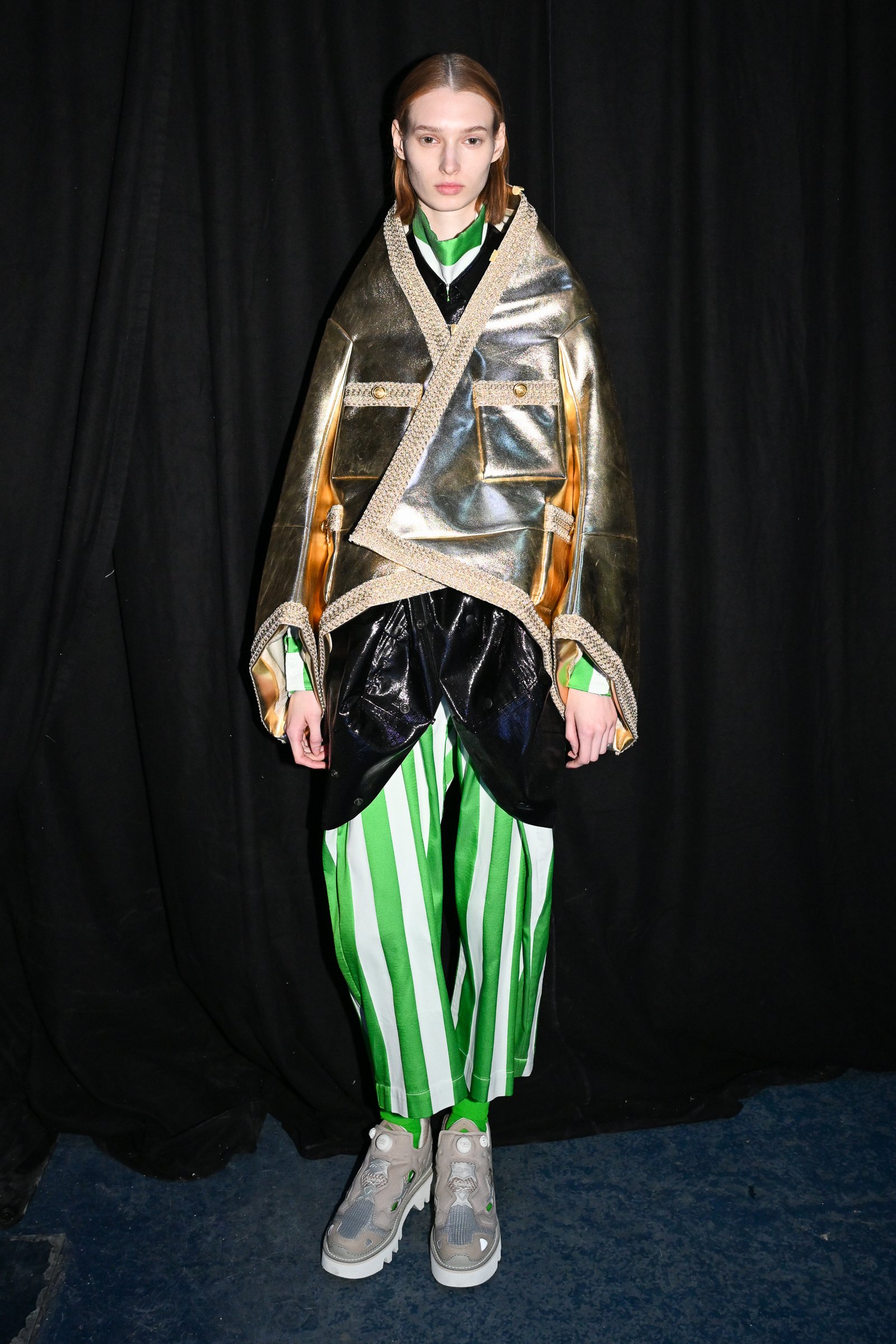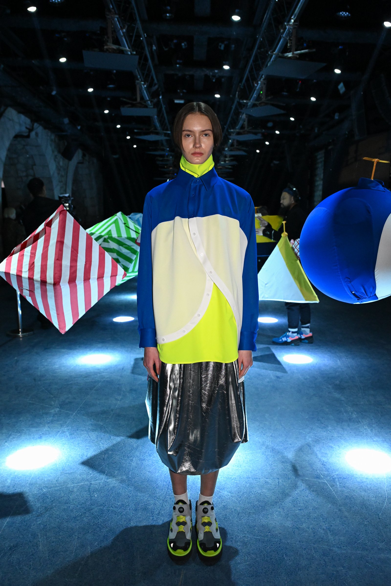 “オブジェクト”をテーマに掲げ、人間のための服ではなく、オブジェクトのための服を作ったという今シーズン。会場では、人間の代わりにオブジェクトが服をまとい、ふわふわと空中を浮遊する様が見られた。