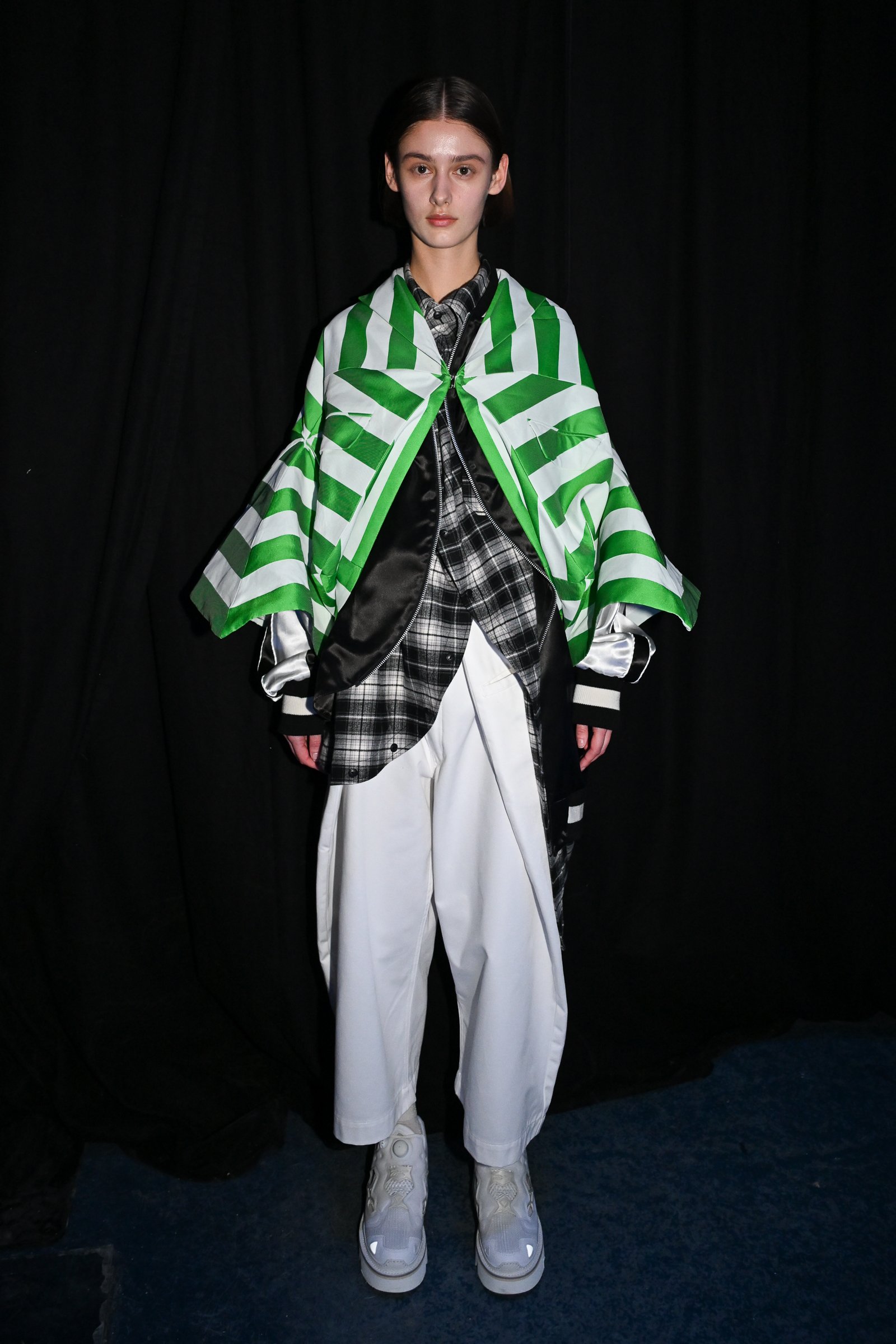 更に、森永が日本人として初めてクリエイティブディレクターに就任したイタリアのラグジュアリーアウターブランド「ヘルノ(HERNO)」のタグを球体にしたルックや、水の使用量を削減したインクジェットなっ染プリンター「フォレアス(FOREARTH)」によってプリントされた水滴のような球体のルックも登場。斬新な発想から生まれた多彩なコラボレーションで視線を集めた。