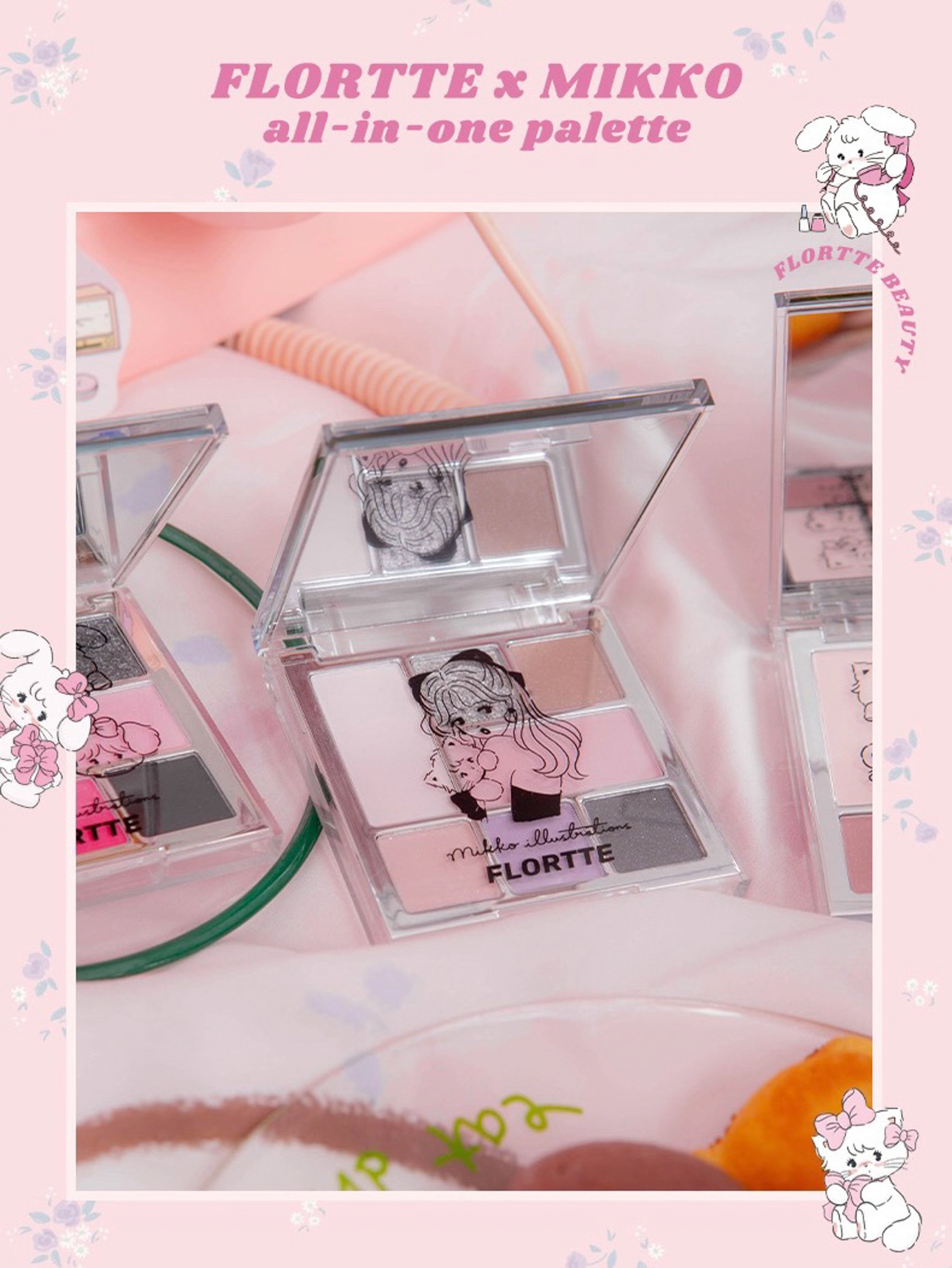 チャーミングなキャラクターを描く日本の人気イラストレーター mikkoが中国コスメブランド「フロレット(FLORTTE)」とコラボ。ムース、キャミー、ラテ、スフレのマスコットがそれぞれついたリキッドリップやアイシャドウ、おしゃれな女の子のイラストが描かれたアイライナーなど、コレクションしたくなるアイテムが揃いました。