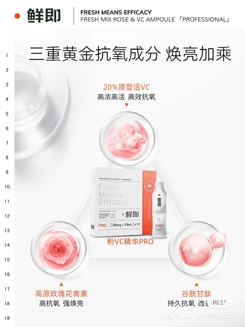 同じく使用前に粉と液体を混ぜて使う「鮮即」のくすみケア美容液は、高濃度ビタミンCとグルタチオン、アントシアニンの3種の抗酸化成分を組み合わせることで、より効果が期待できます。