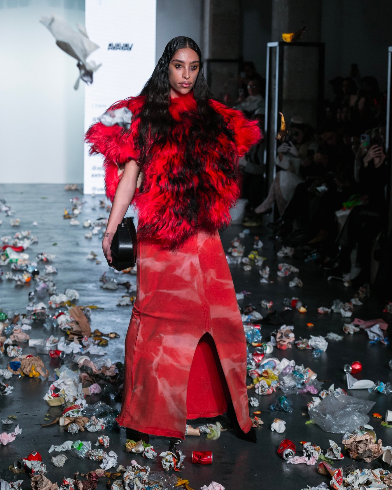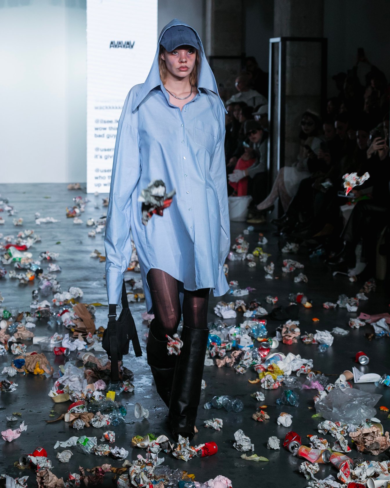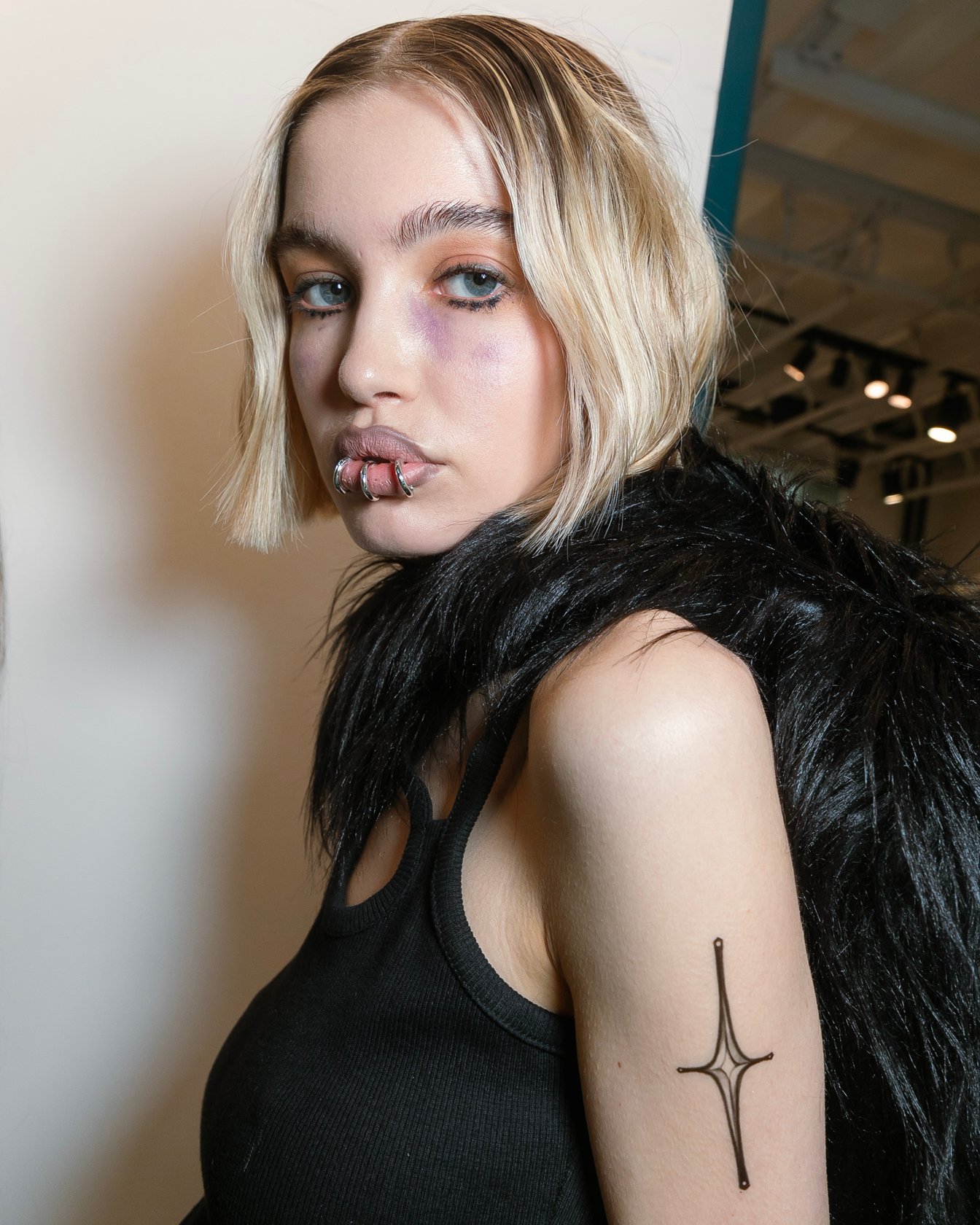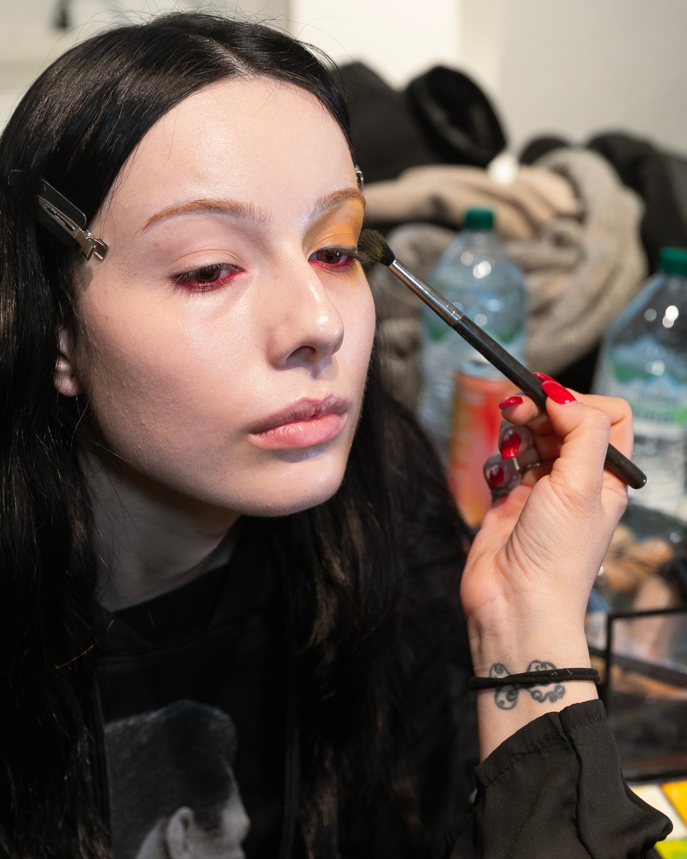 2024?25年秋冬シーズンのミラノ?ファッションウィークで話題を集めた「アヴァヴァヴ(AVAVAV)」。ベアテ?カールソン(Beate Karlsson)がクリエイティブディレクターを務め、毎シーズン前代未聞なショーで来場したプレスや観客だけでなく、SNSなどを通じて多くの人々を驚かせています。今シーズンはバナナの皮や紙クズといったごみやジュースなどが、観客席からランウェーを歩くモデルに次々と浴びせられるといった演出。これは「愛とヘイト」をテーマに、インターネット上の誹謗中傷に対する風刺を表現したというもので、ルックは中世の魔女狩りへの言及として、その時代をイメージする十字架のようなネクタイやテーラードスーツがスタイリングされていました。この“奇抜”なコレクションをメイクアップ「M·A·C(メイクアップ アート コスメティックス)」とヘア「ウェラ プロフェッショナル(WELLA PROFESSIONALS)」がサポート。ショー直前のバックステージで、それぞれのリードアーティスト、Michele Magnani氏とValentino Fai氏にメイクアップとヘアのポイントについて聞きました。