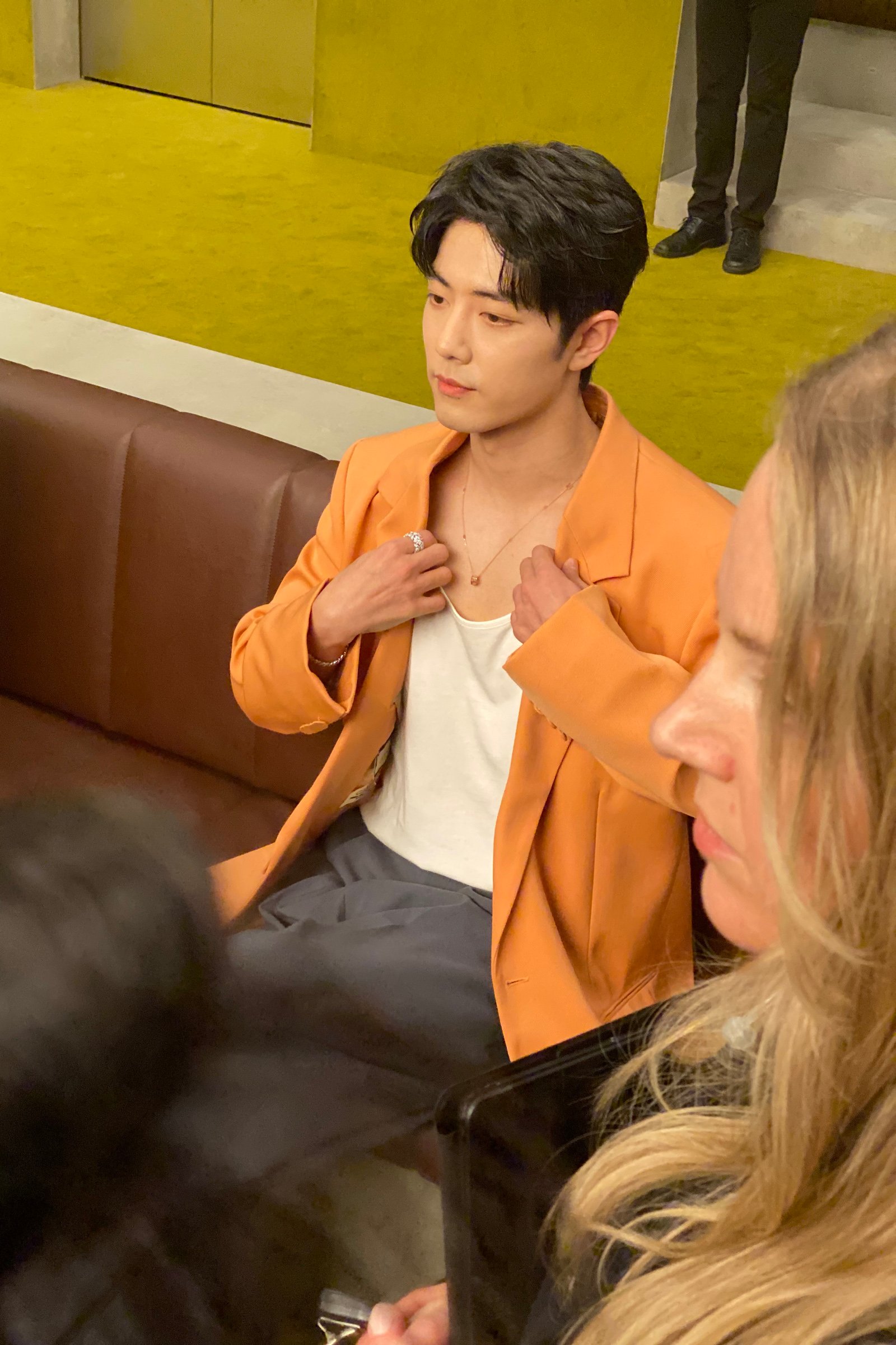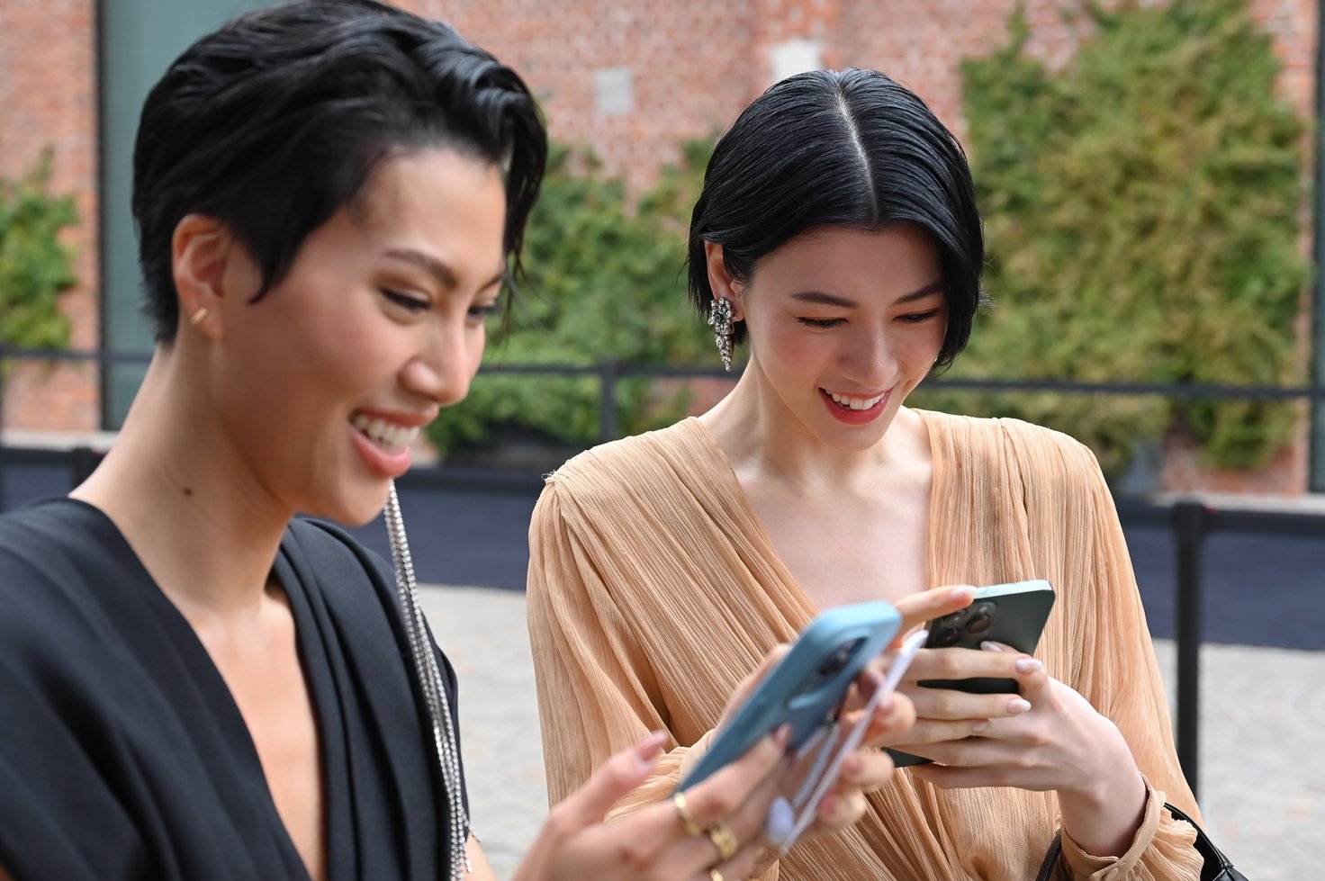 そして会場内のセレブリティのウェイティングルームには、すでに来場ゲストたちの姿が。ショー開始を待つひとときにはゆっくりゲストたちとグリーティング。イタリア?ローマから生まれたスーパースター、日本でも人気のロックバンド「マネスキン(M?neskin)」とのショットもキャッチ。ショーまでの束の間の時間を過ごします。
