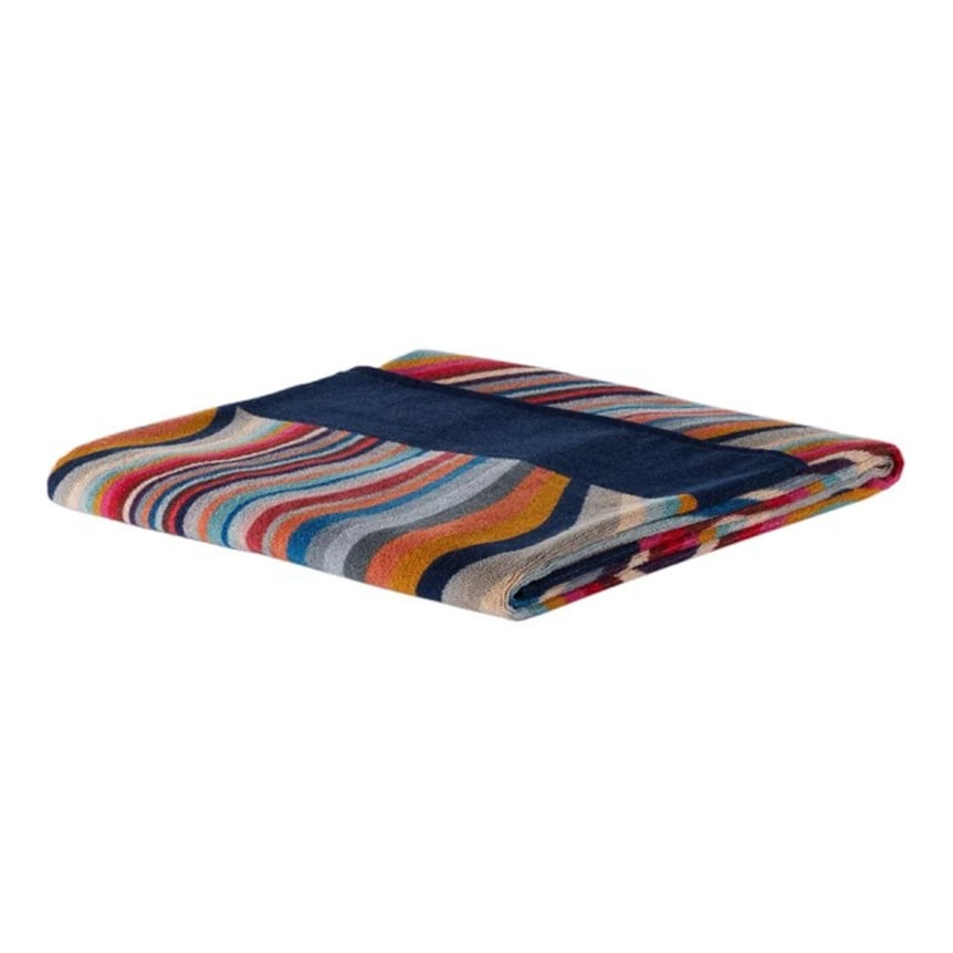 「ポール?スミス(Paul Smith)」のシグネチャーともなっている、マルチカラーラインが目を引くビーチタオル。体をすっぽりと覆う160x80cmの大判かつ落ち着いたカラーなので、年代や性別問わず長く愛用できる一枚です。