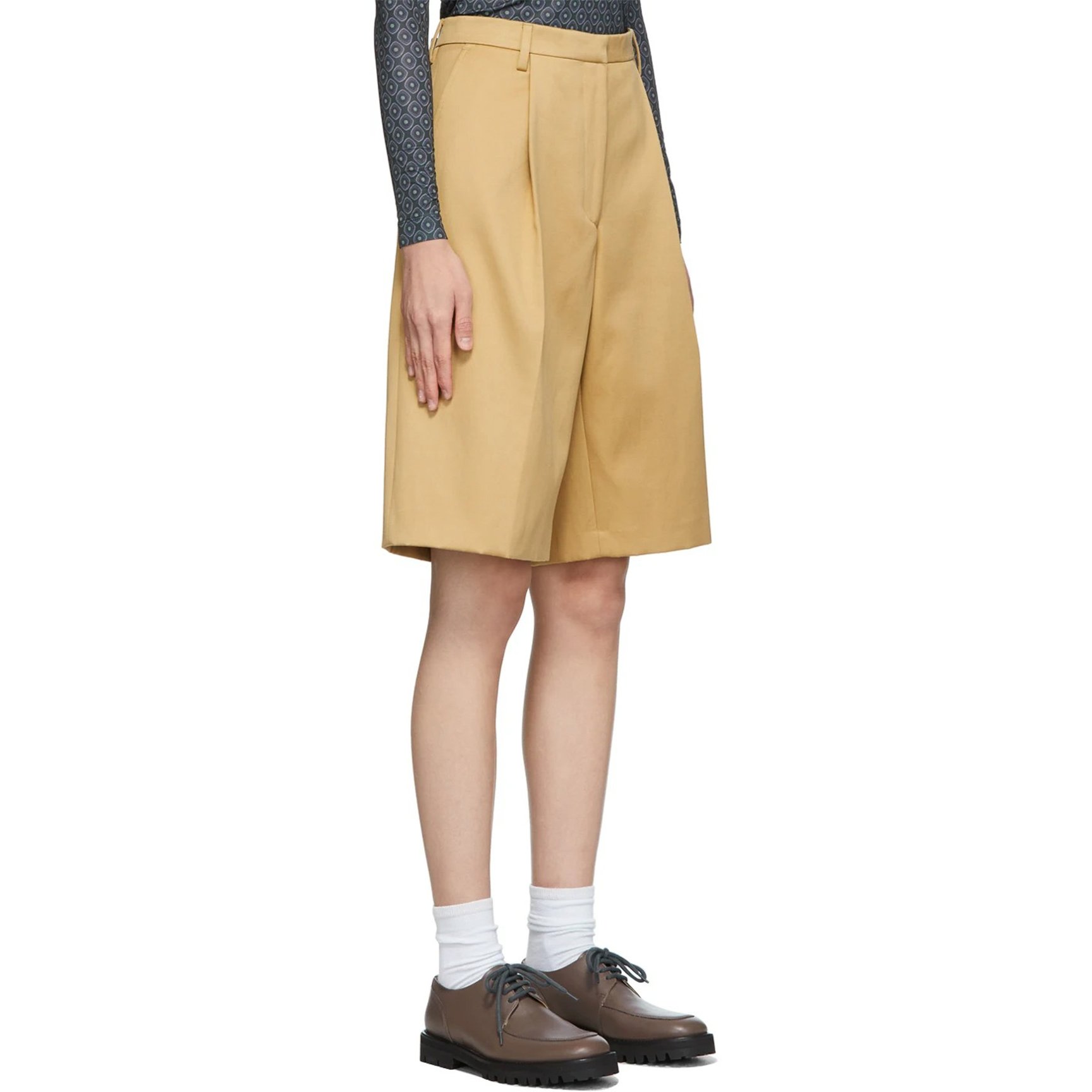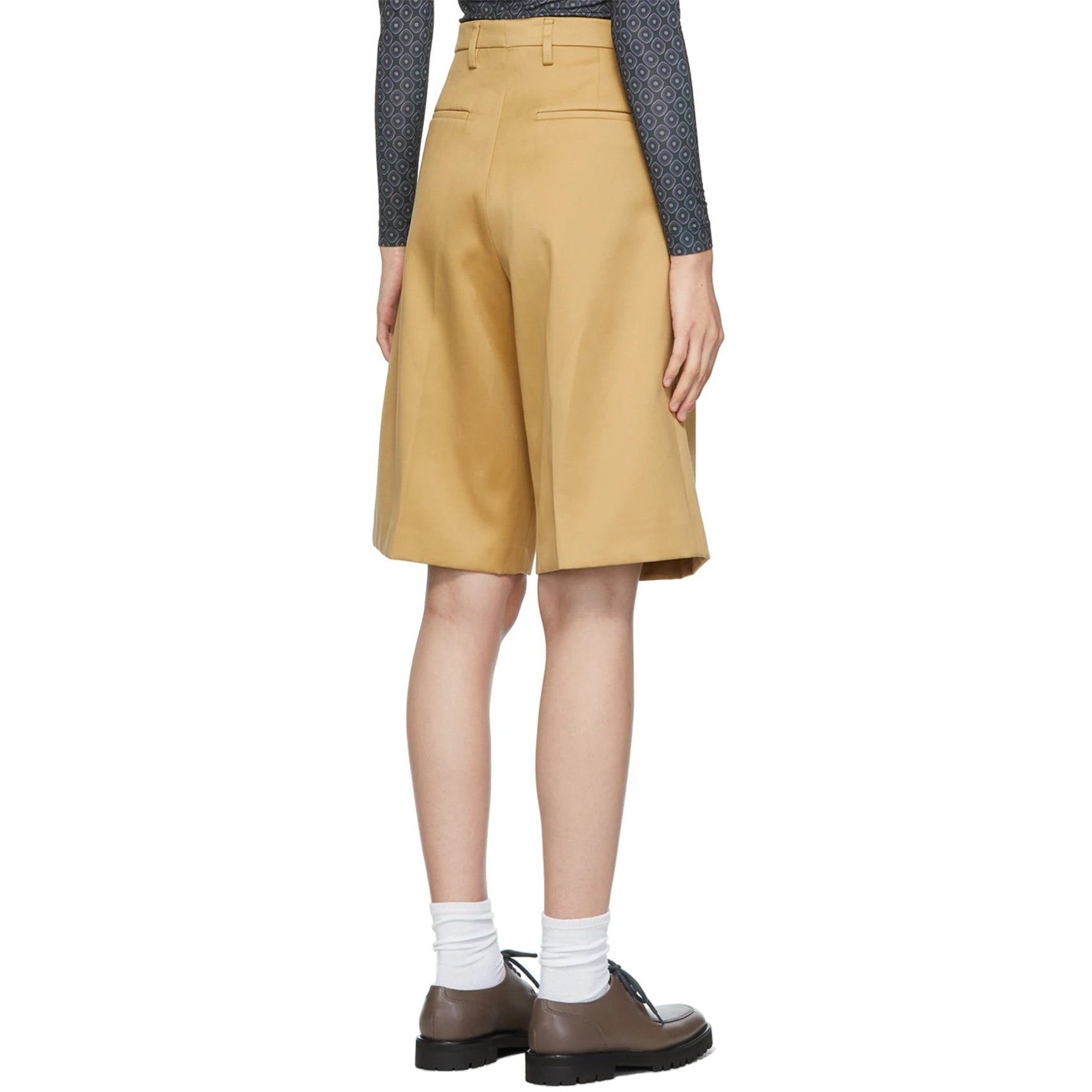フロントにインバーテッドプリーツが施された裾に向かって綺麗に広がっていくワイド型のバミューダパンツ。トレンドのクロップド丈のトップスとの相性もばっちりです。