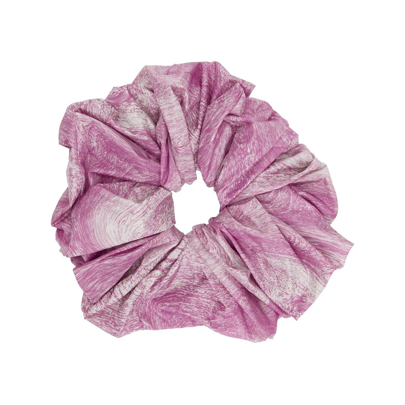 パープルのマーブル模様が大人っぽい「オープニング セレモニー(OPENING CEREMONY)」のジャイアントシュシュ。伸縮性のあるサテンのシュシュで、さまざまな型のまとめ髪に重宝します。腕につけて大ぶりのブレスレット感覚で楽しむウラ技もお試しあれ。
