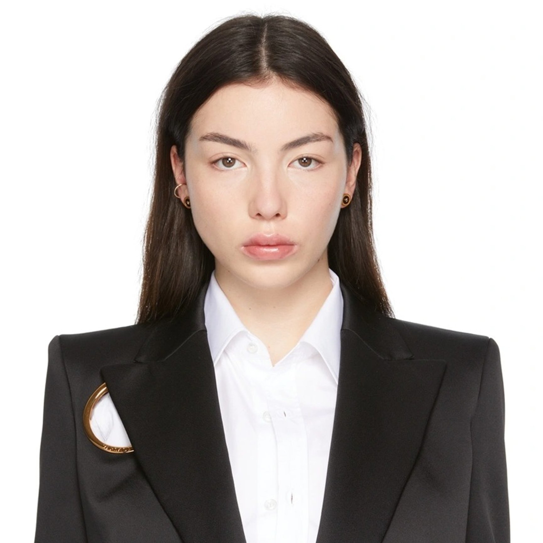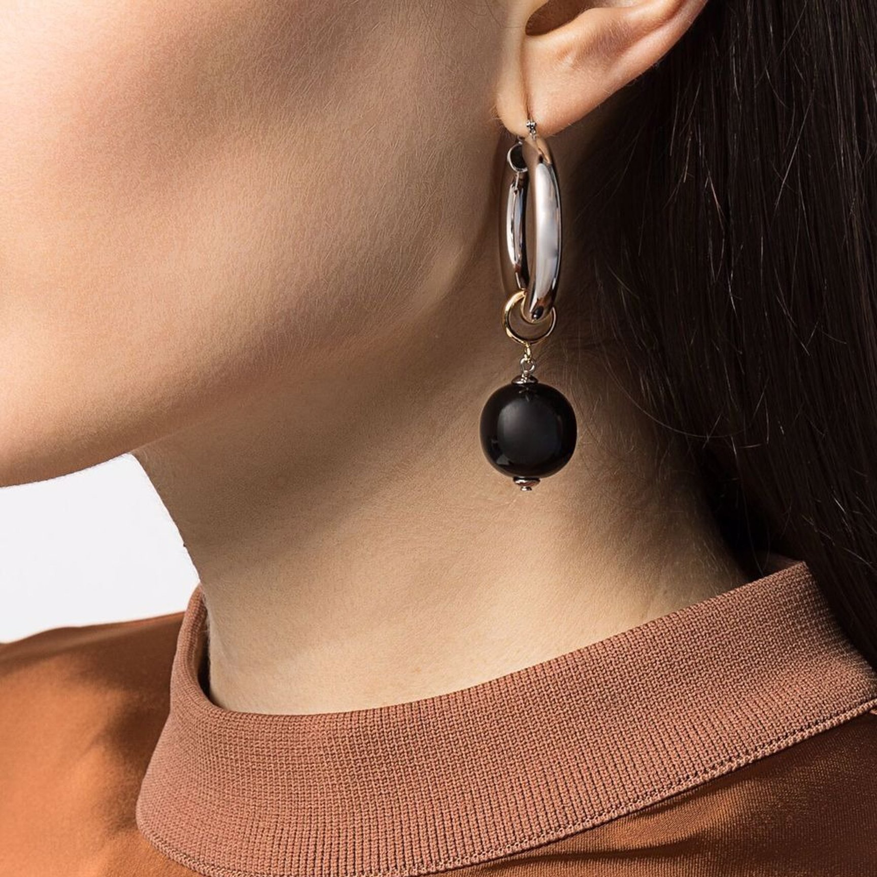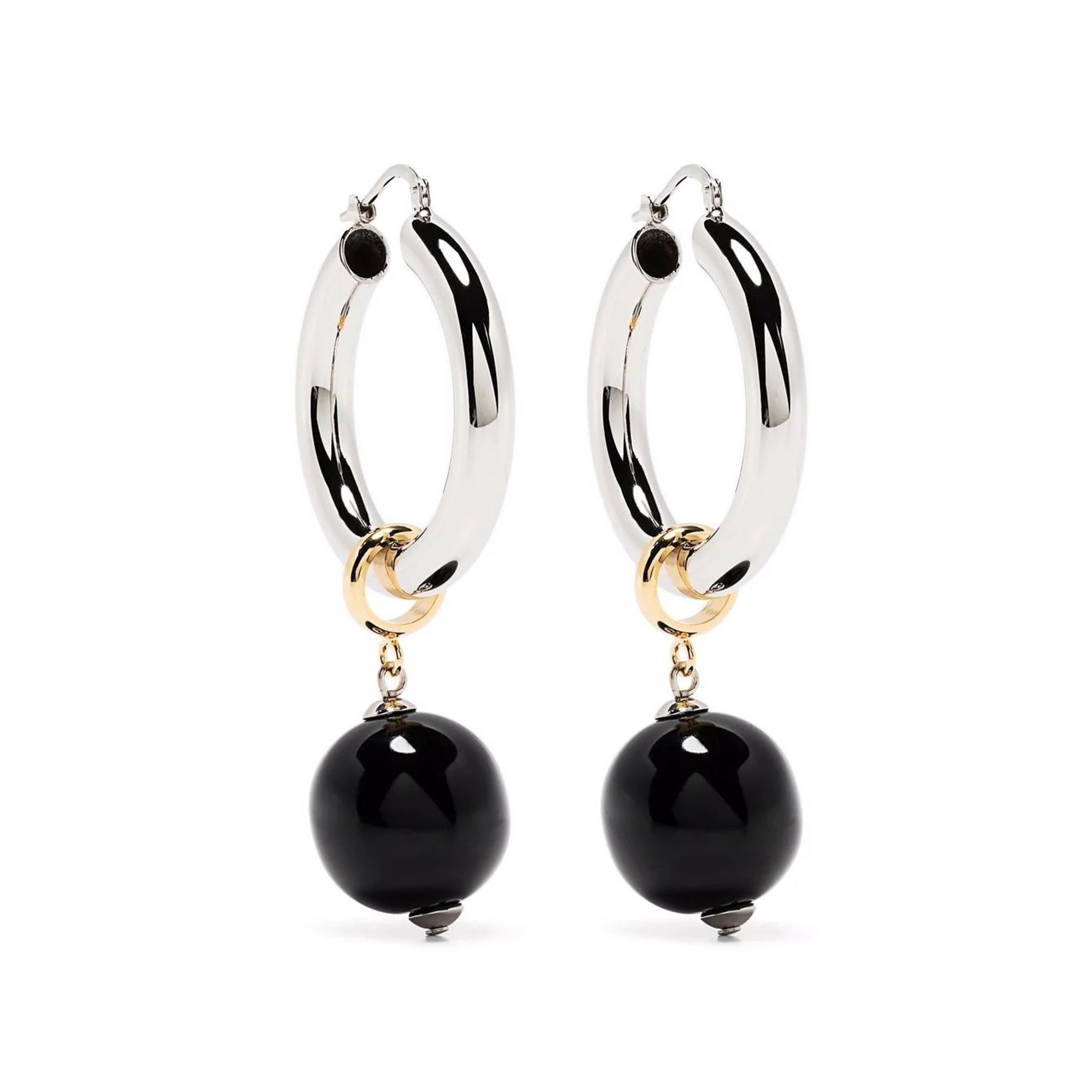 インパクトのある大ぶりなピアスに注目が集まっている昨今。「ジル サンダー(JIL SANDER)」のボリュームピアスは、美しいブラックガラスと均等にアーチを描いたリングが艶やかに耳元で揺れます。ネックレスやブレスレットなど、同じ造形美をデザインしたシリーズがリリースされていることも知っておきたいポイント。おしゃれに差をつけるブラックで、洗練されたムードを手に入れて。