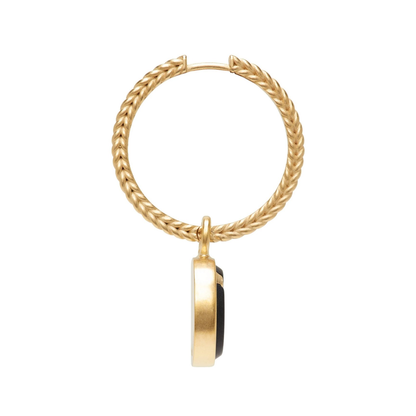 芸術的なディテールがアイコニックな「メゾン マルジェラ(Maison Margiela)」のシングルドロップピアス。オリエンタルチックな雰囲気を感じる編み込まれたフープの先には、ゴールドと美しく交わるブラックのモチーフをパッチ。ロゴもナンバリングも採用していない、匿名性の高いジュエリーアイテムに心惹かれます。