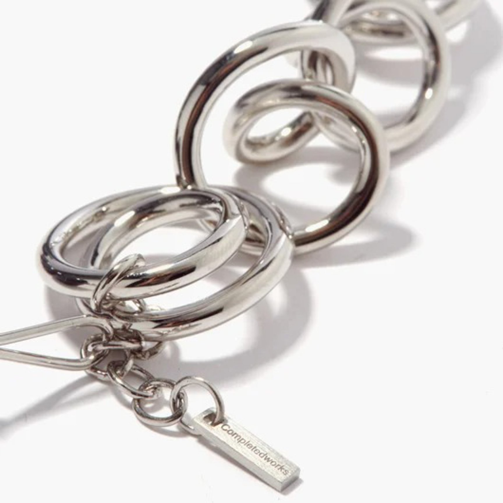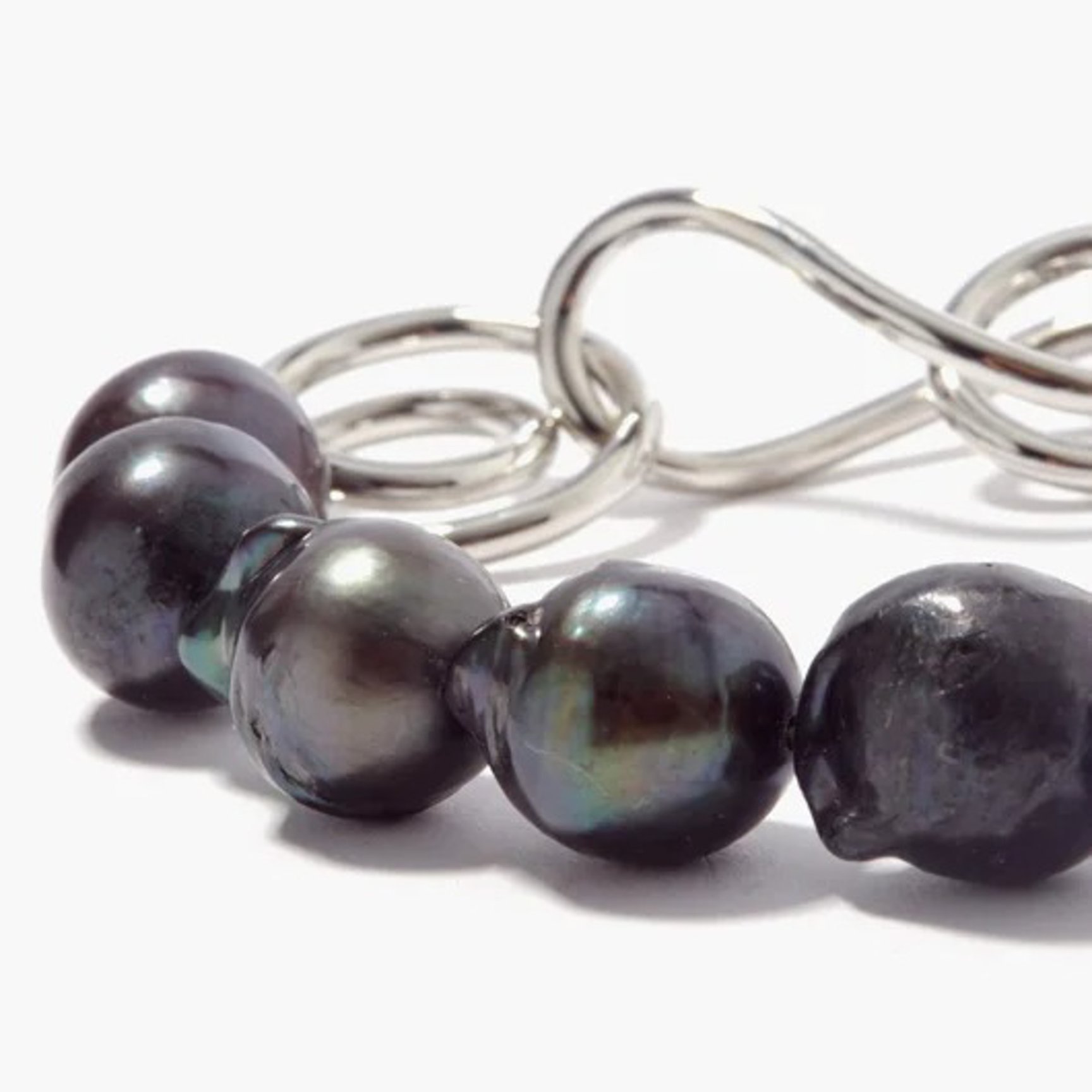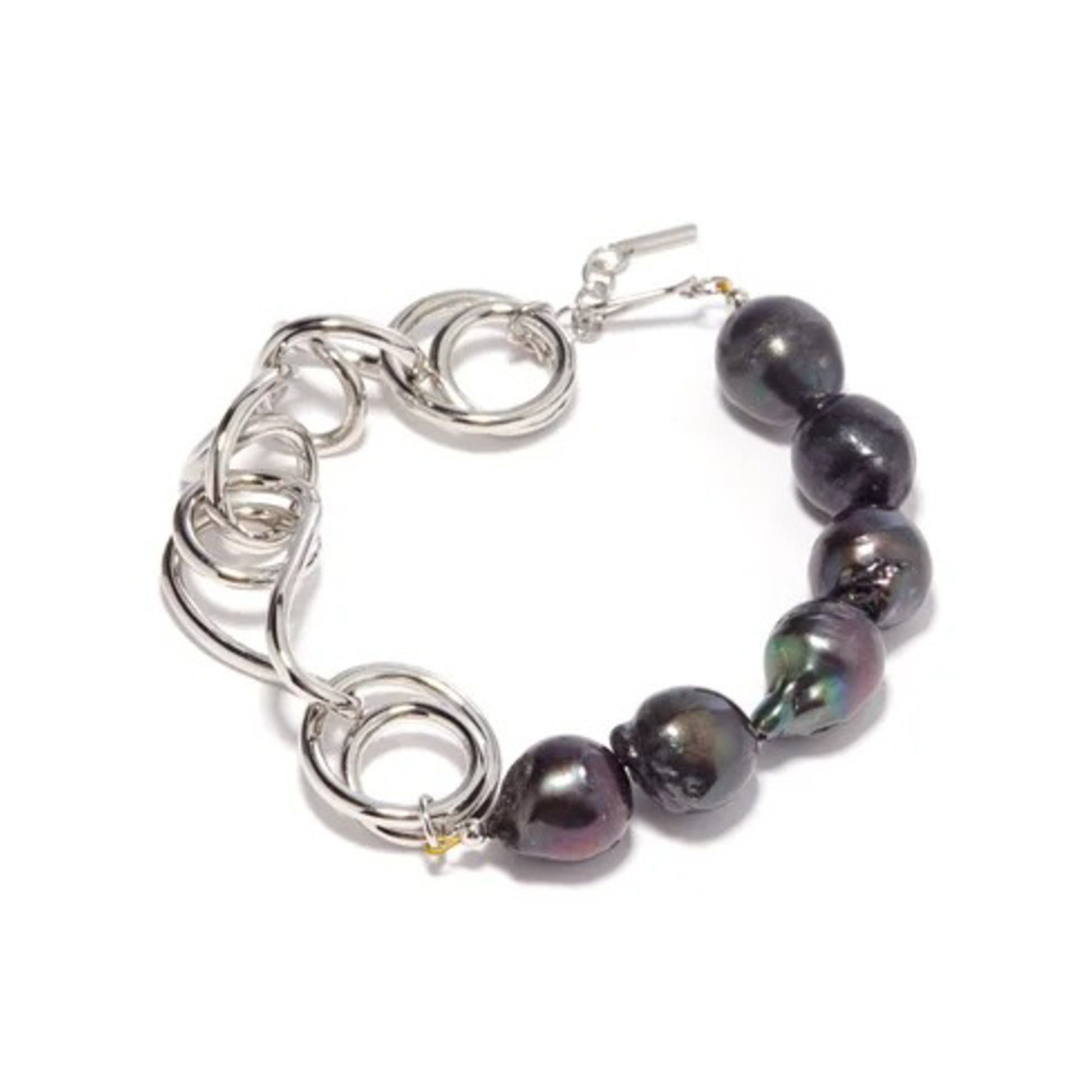 天然素材が持つ不調和な美しさを追求した、センスあるジュエリーをリリースしている「コンプリーテッドワークス(COMPLETEDWORKS)」。ブラックのバロックパールを採用したブレスレットは、オリジナリティ溢れるパールの粒感と、複雑に絡み合ったスターリングシルバーがデコラティブで魅力的。肌の上でもニットの上でも映える、モードな作品です。