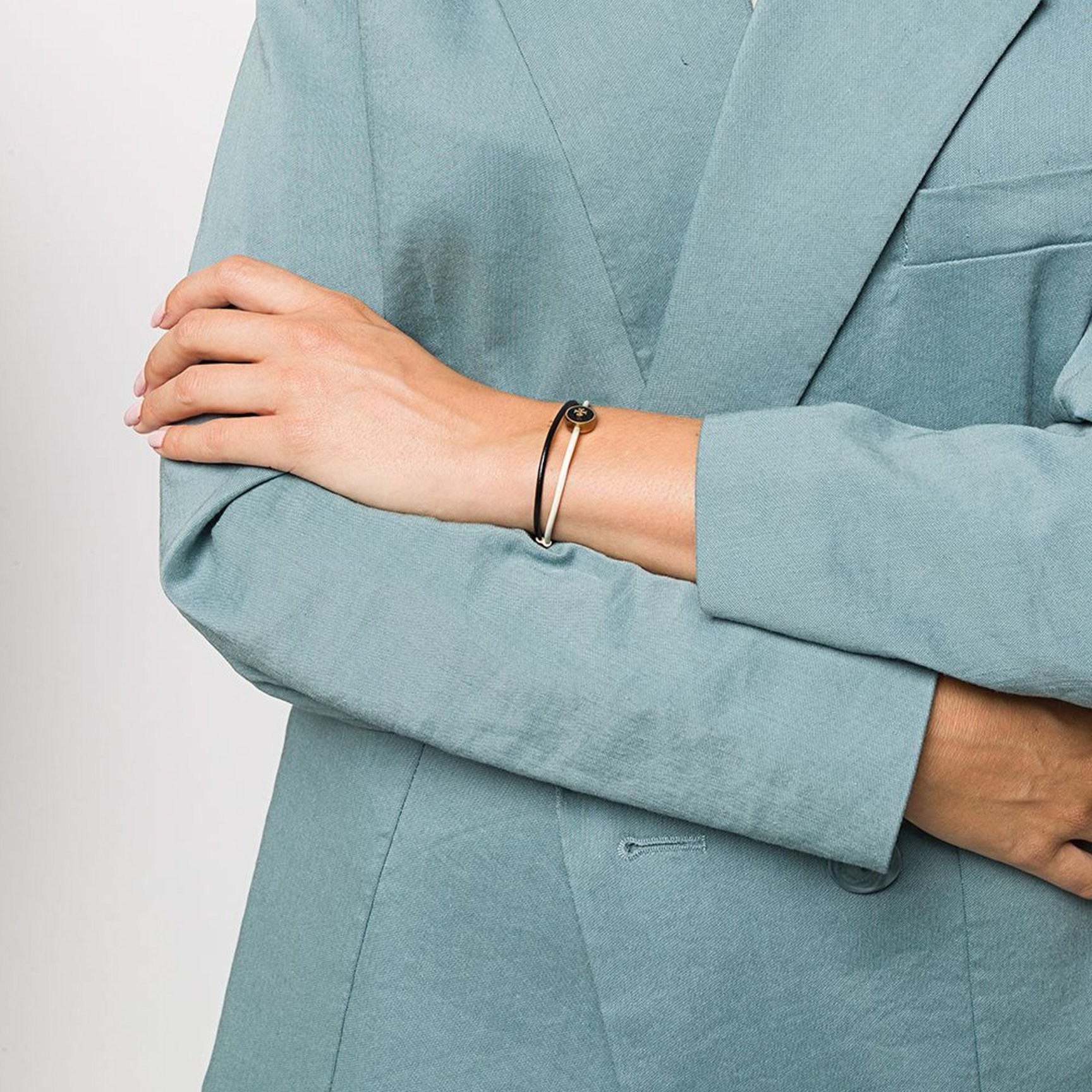 スポーティなスピリットと、優雅さを兼ね備えた「トリー バーチ(TORY BURCH)」のドローコードブレスレット。ブラック?ホワイト?ゴールドのコントラストとバランスが、こなれ感のある都会的なオーラを放ちます。日常のカジュアルスタイルからオフィスシーンまで、忙しく過ごす大人の女性にぴったりマッチ。