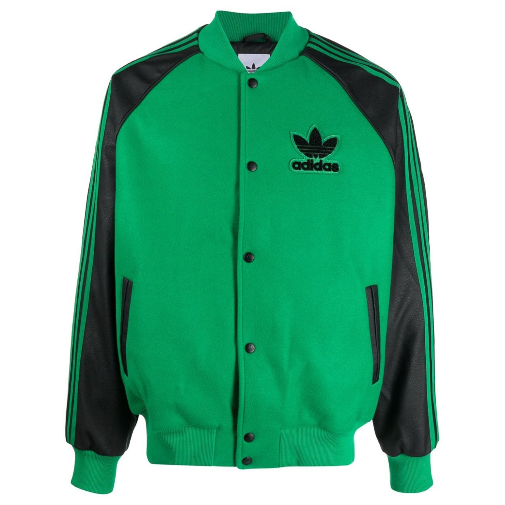 鮮やかなブライトグリーンがポップな「アディダス(adidas)」のボンバージャケット。スポーツミックススタイルにトレンド感ある色を添える、リサイクルポリエステルとアニマルフリーレザーを使用したアイテムです。フロントはスナップボタン留めで、カーディガンのようにも着こなせます。