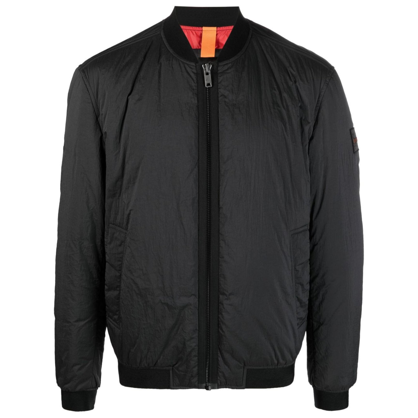 ミニマムなデザインで扱いやすい、「ボス(BOSS)」のパデッドボンバージャケット。リブやジッパー、左腕のロゴパッチなど表面はシックなブラックで統一し、ミリタリーに寄りすぎない印象に仕上げています。洗濯機洗いも可能な軽い着心地のアウターは、レジャーシーンやワークアウトにもぴったり。