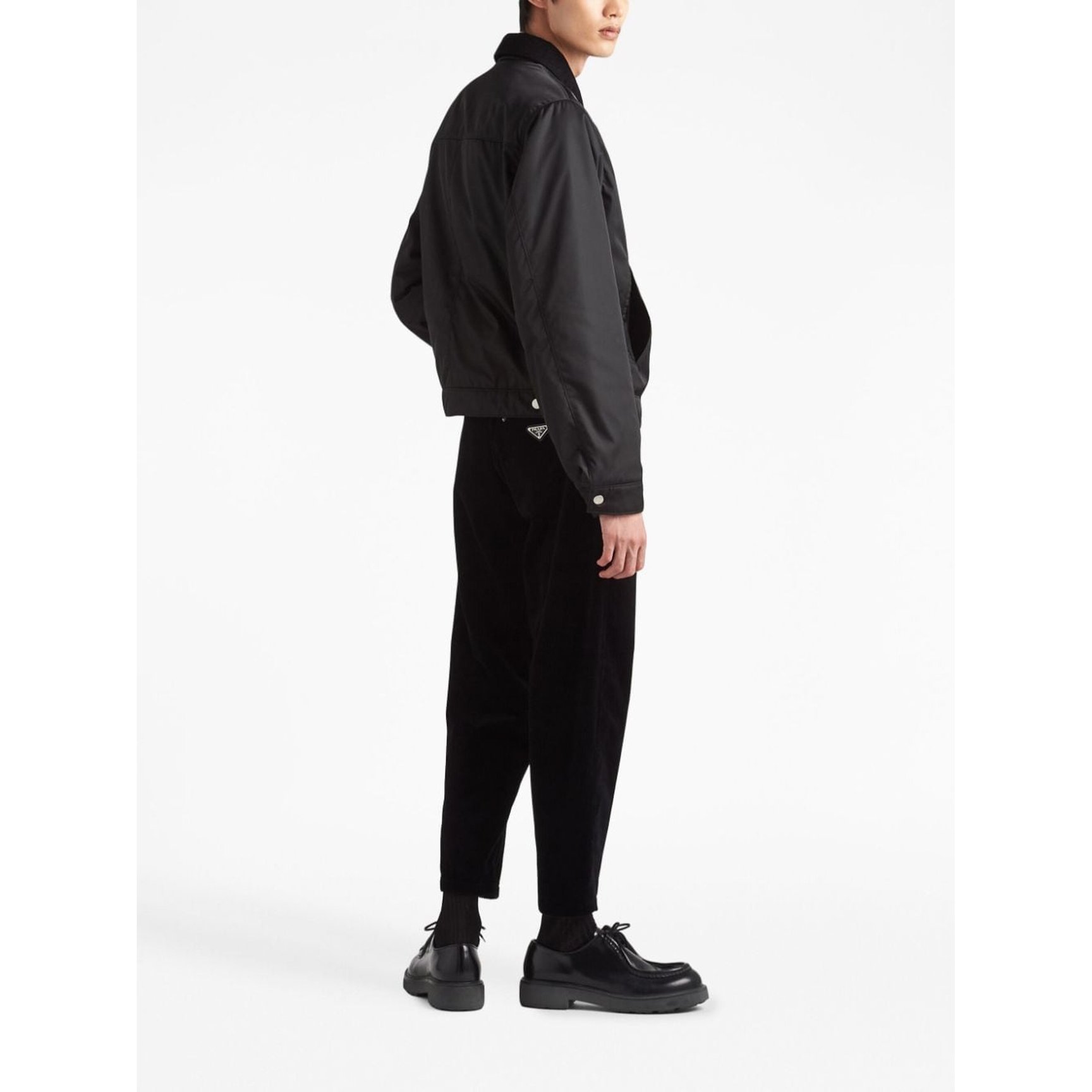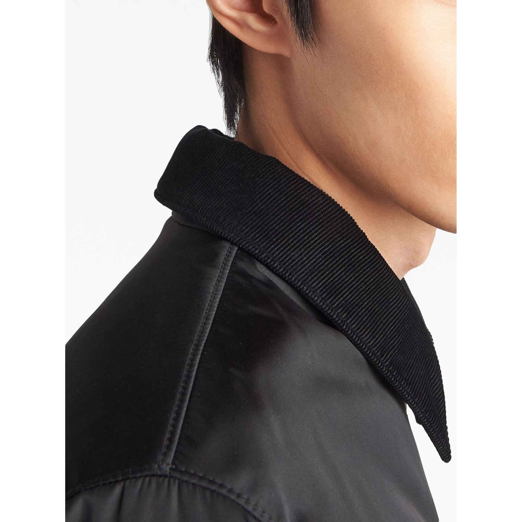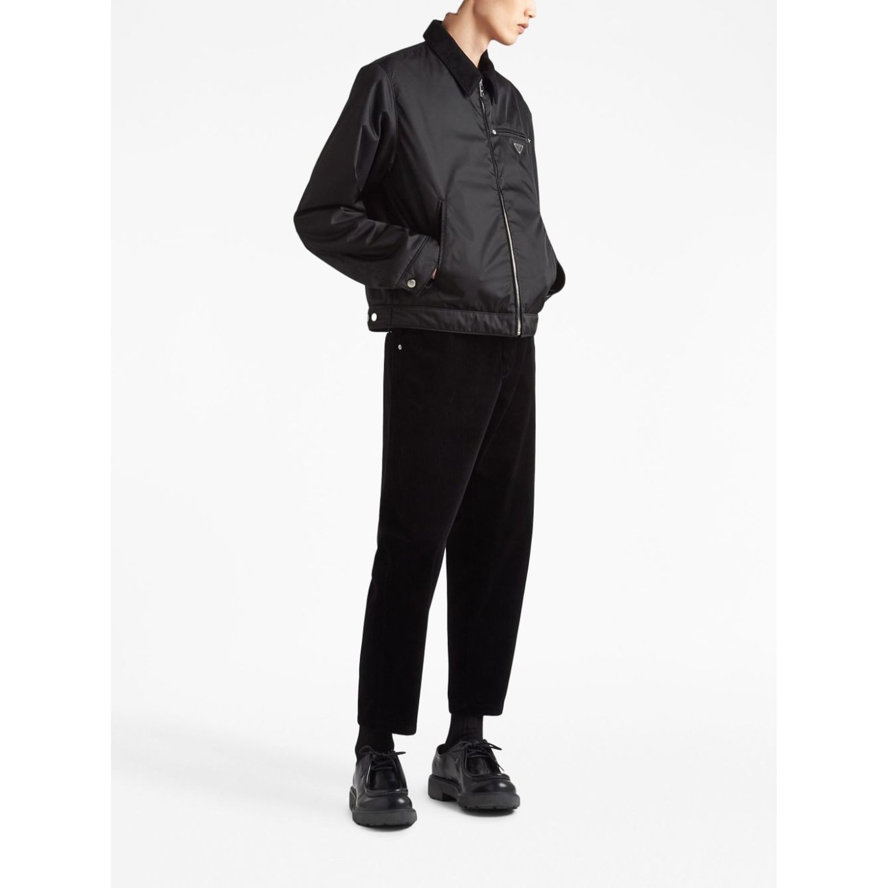 ジェントルな気品溢れる「プラダ(PRADA)」のRe-Nylonジャケット。サステナブルな再生ナイロンの艶を惹き立てるコーデュロイのシャツ襟と、エナメルメタルのトライアングルロゴを飾ったシンプルなデザインで、ブランドのポリシーと魅力を存分に堪能できます。3シーズンでさらりと羽織れる、線の細いタイトなアウターです。
