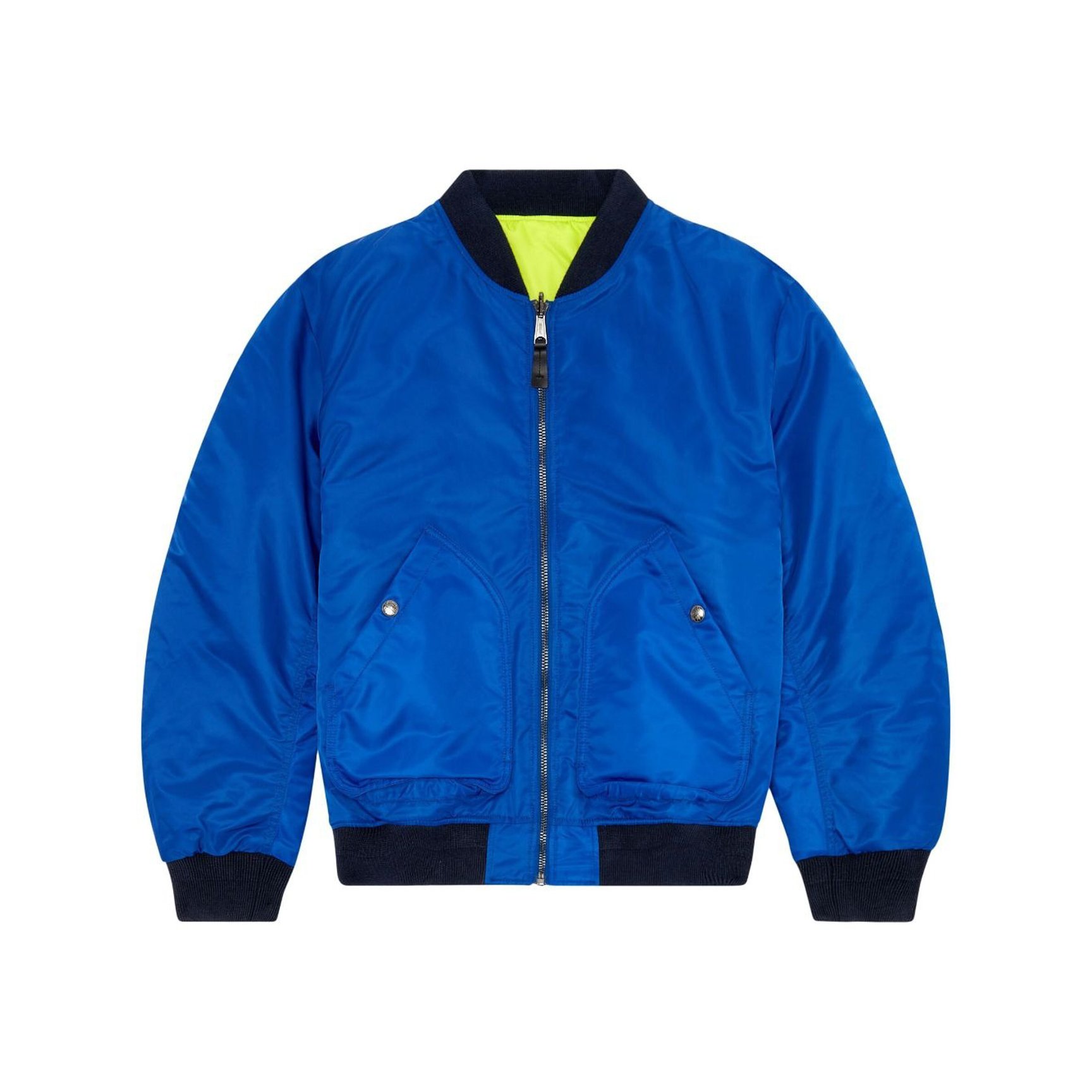 目が覚めるようなネオンカラーが眩しい、「ディーゼル(DIESEL)」のパデッドボンバージャケット。ブルー×グリーンのリバーシブル仕様で、どちらの面でも主役級の個性を主張できそうな予感。アームには立体感を作るギャザーを寄せ、バックには大きなイニシャルロゴを配置。色違いには落ち着きのあるモノトーンも展開しています。