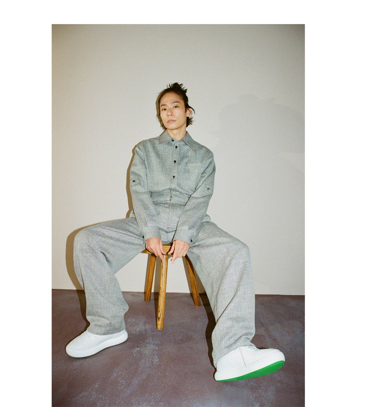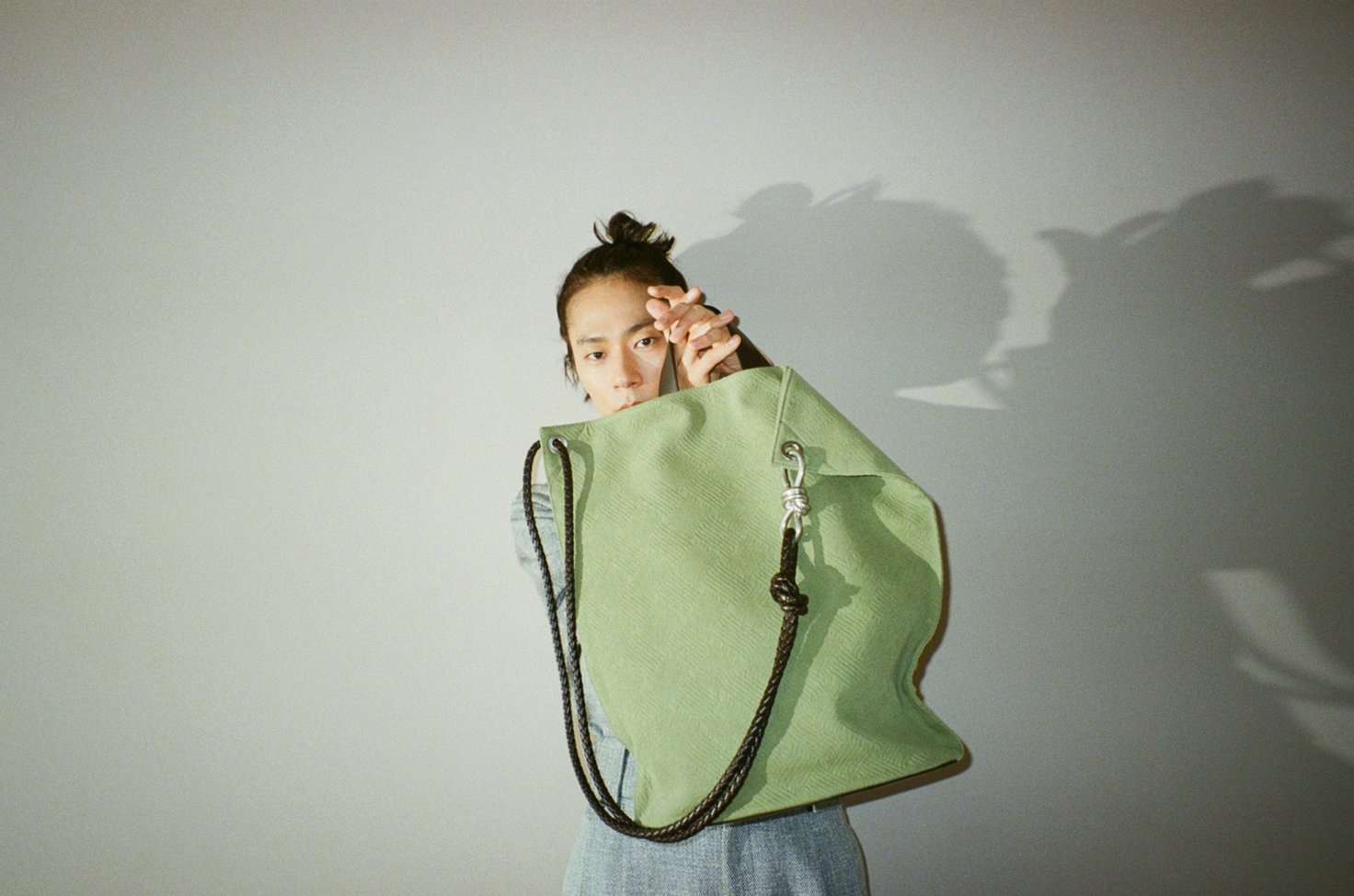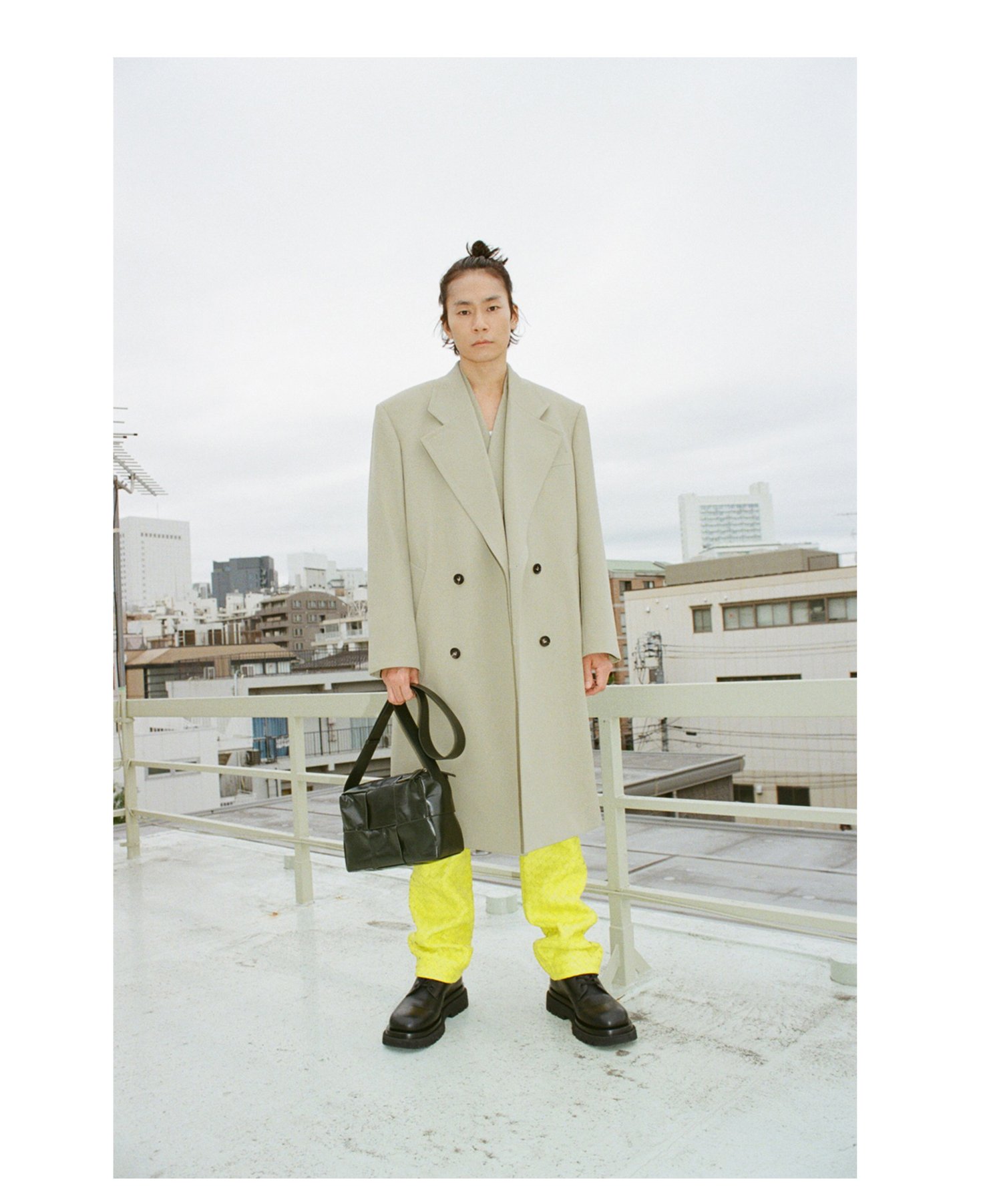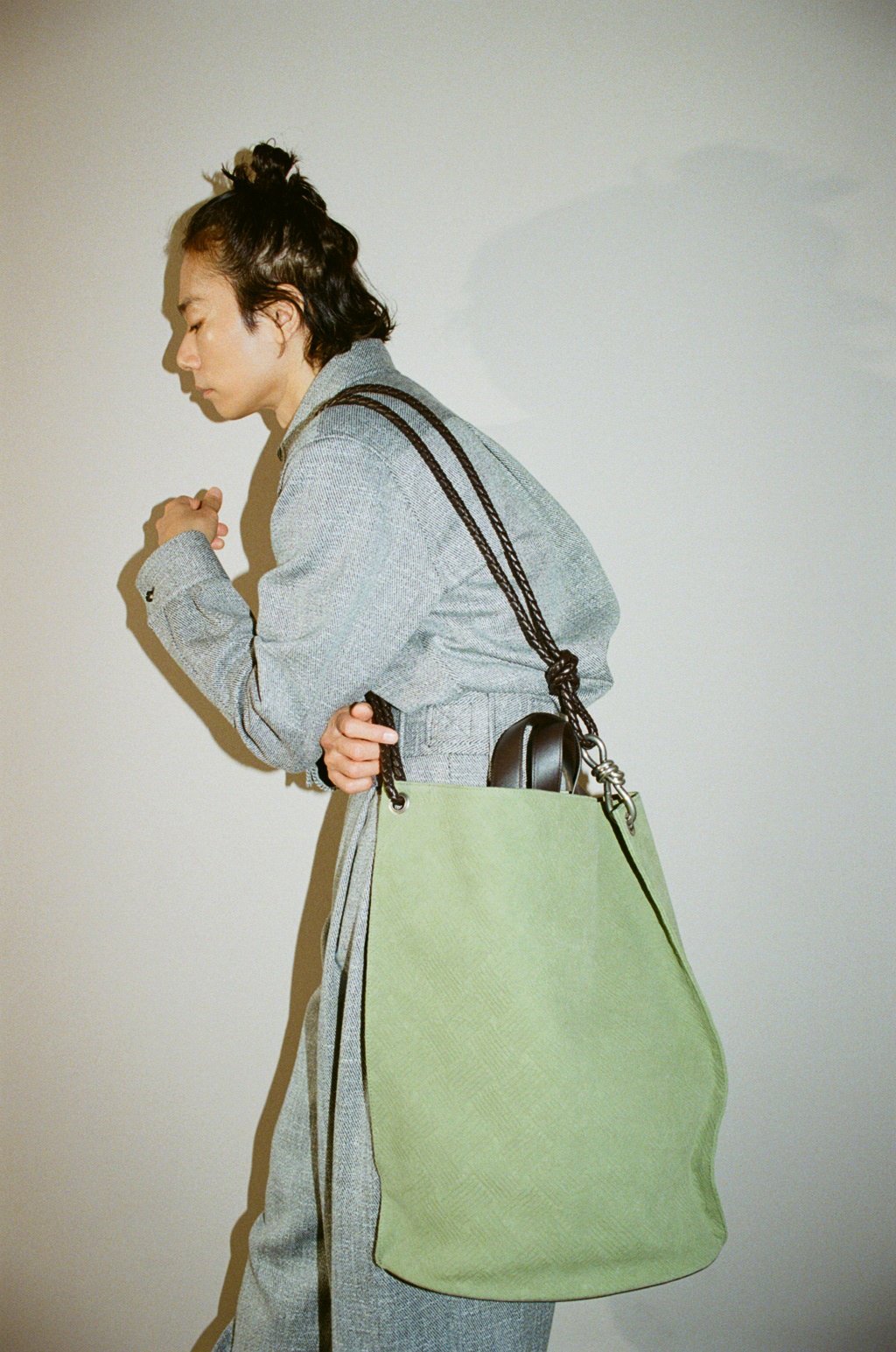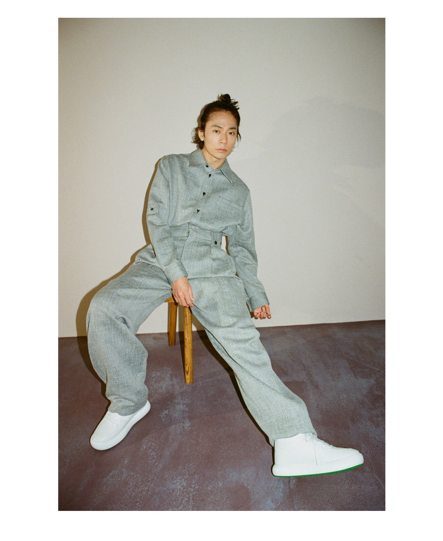 ■川上洋平さん着用アイテム:シャツ(18万4800円)、パンツ(20万1300円)、シューズ(14万8500円)、ラージ ノット バケット(モス/フォンデンテ)(H50×W35×D18cm)34万6500円
