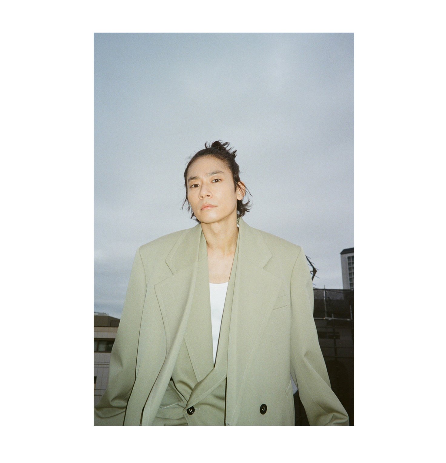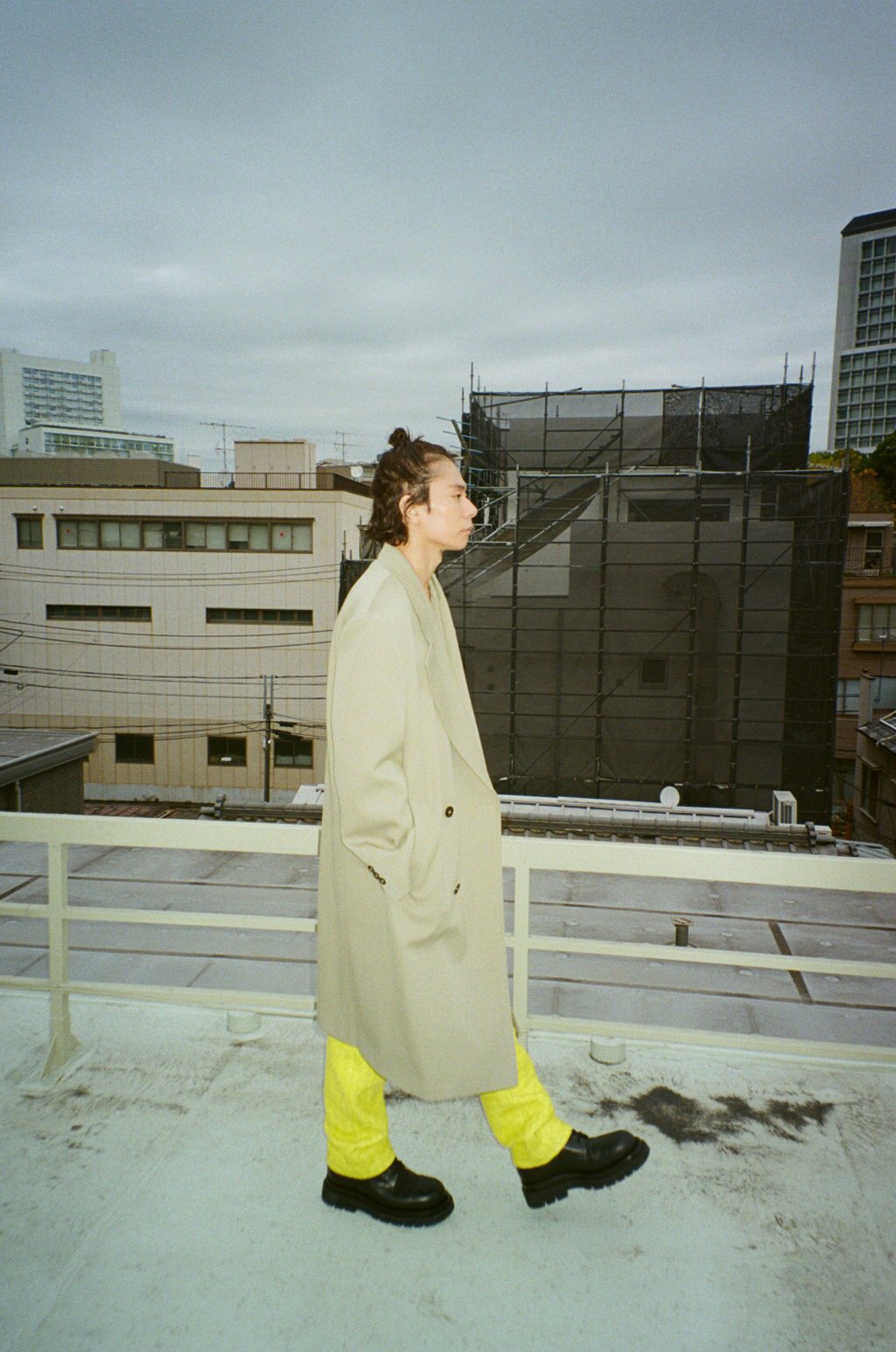 ■川上洋平さん着用アイテム:コート(48万6200円)、中に着たジャケット(36万9600円)、中に着たタンクトップ(5万7200円)、パンツ(108万9000円)、シューズ(18万1500円)、アルコ カメラバッグ(ダークグリーン)(H18×W28×D9cm)34万6500円