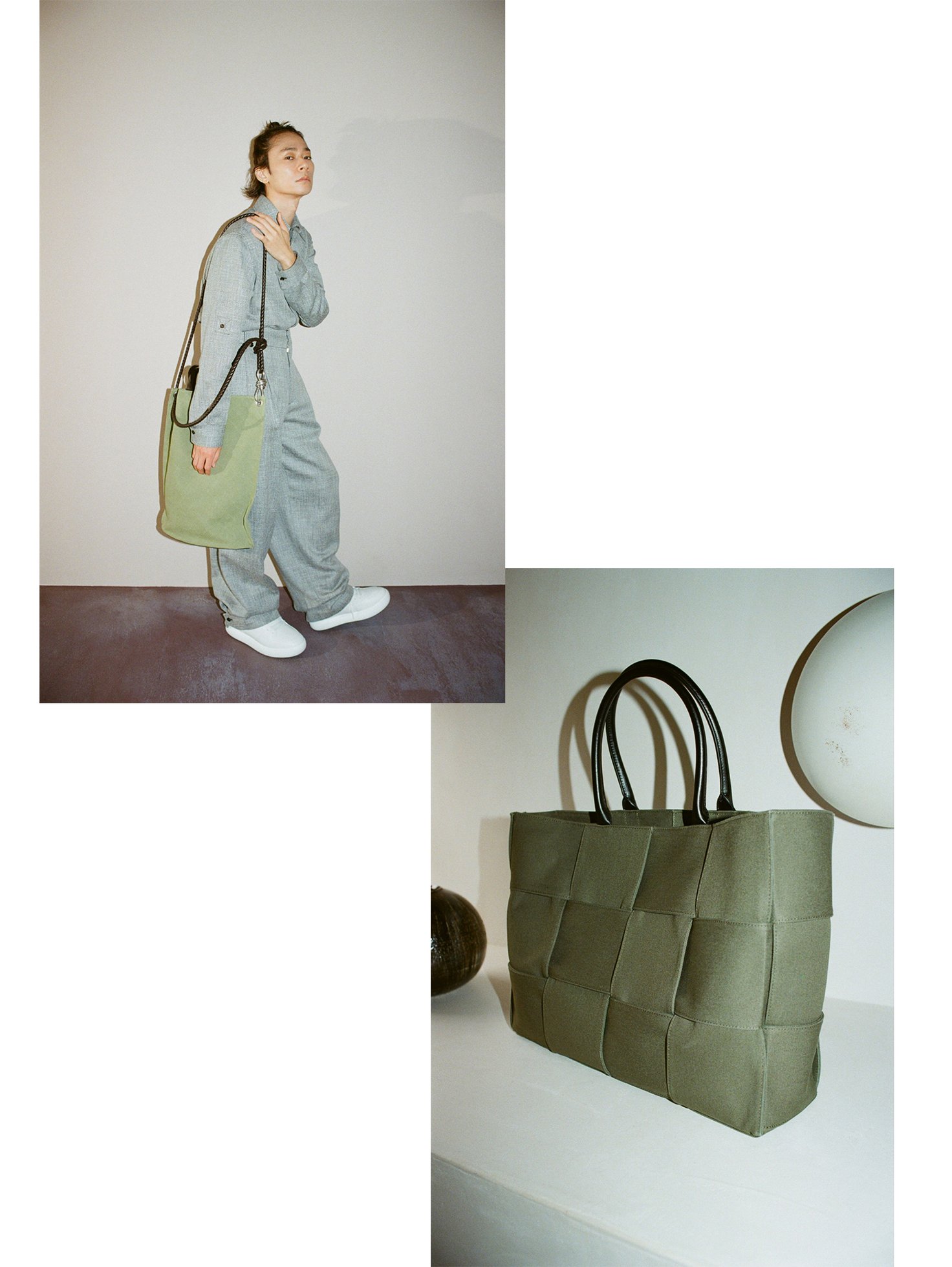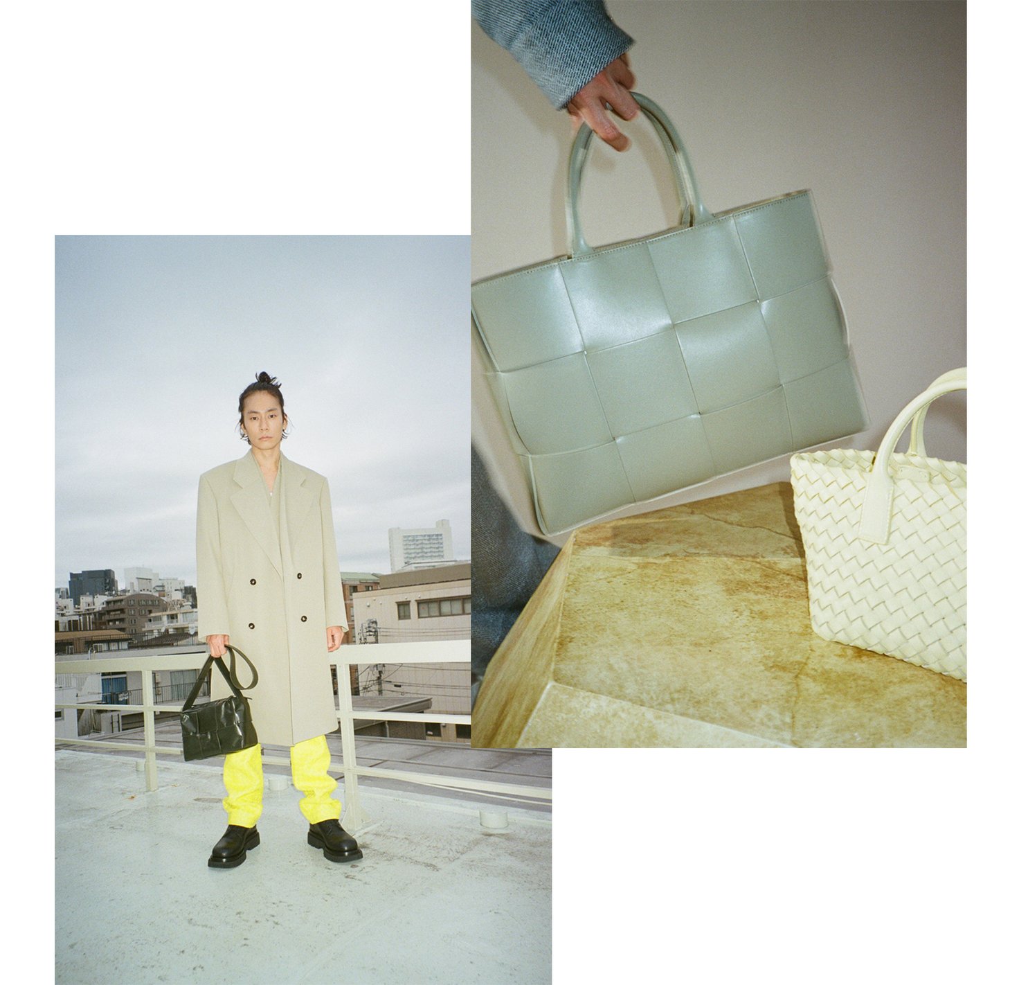 やさしく寄り添い、何気ない日々を鮮やかにしてくれるボッテガ?ヴェネタ。新クリエイティブディレクターのマチュー?ブレイジーが手掛ける新作コレクションをまとった川上洋平は、その洗練されたデザインと心地よい質感に魅了される。シグネチャーであるイントレチャート(手編み込み)が様々な手法で施されたバッグを手に、クラフトワークの温もりを感じて。