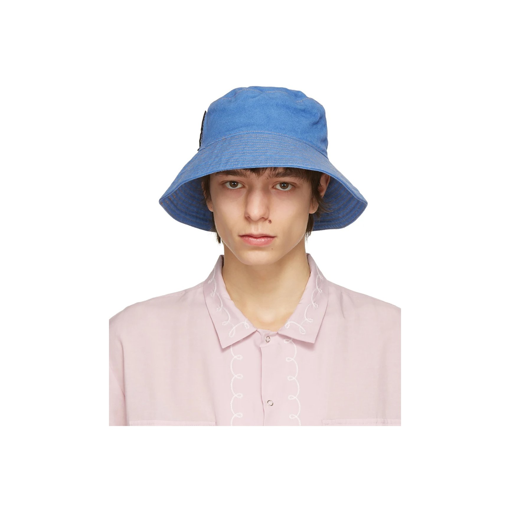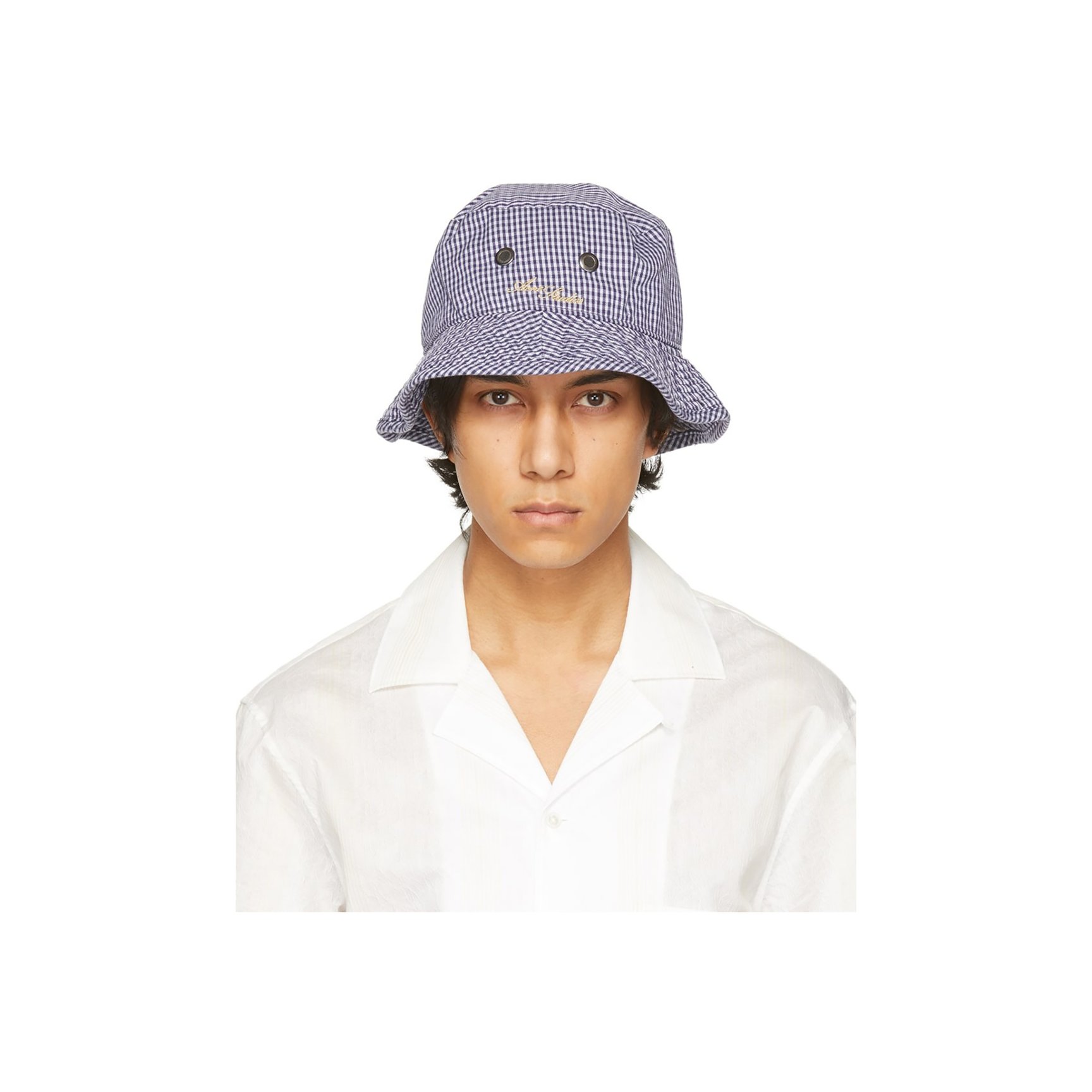 Acne Studios ブルー & ホワイト チェック ロゴ バケット ハット ?17,500