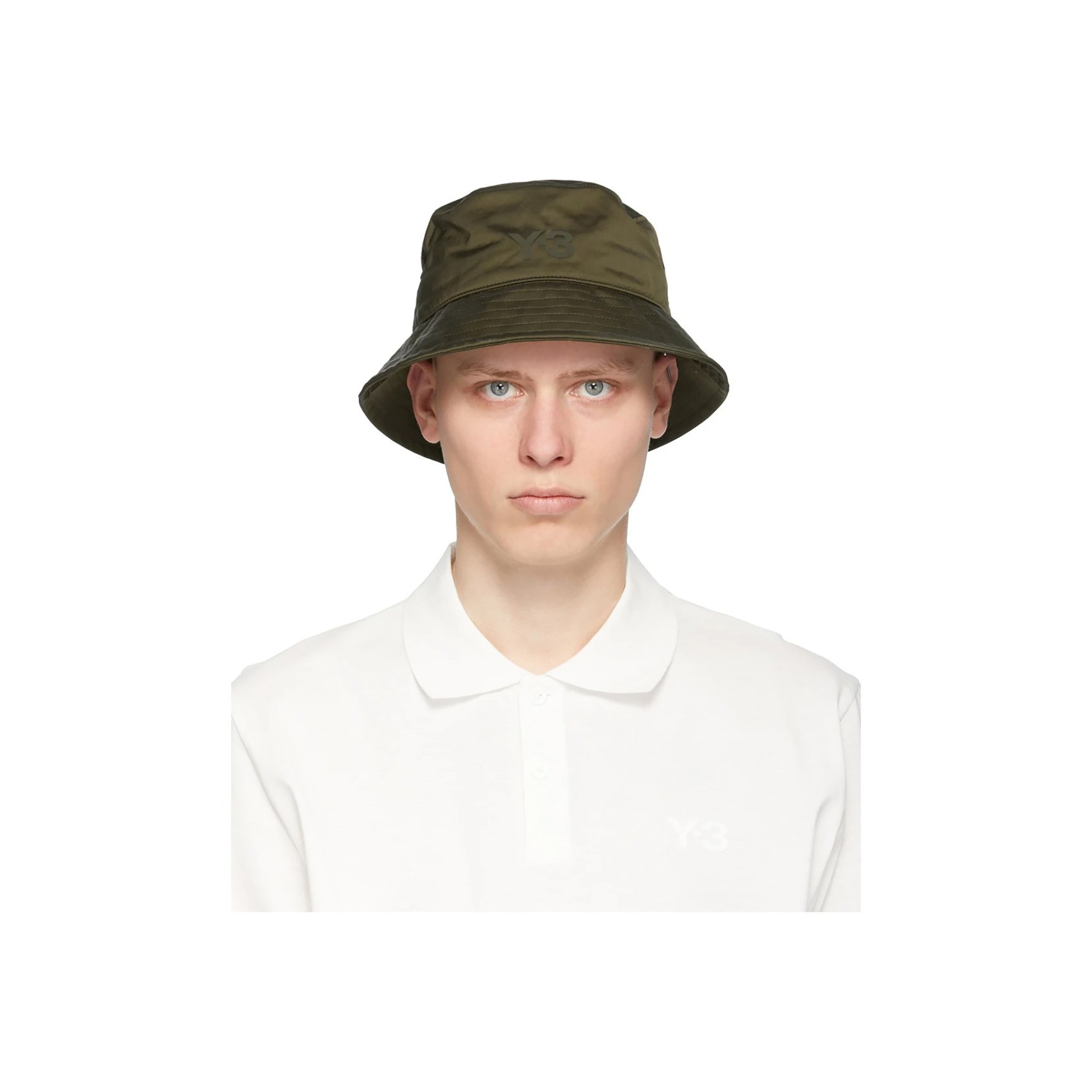 ミリタリー感のあるカーキとツヤのあるサテン素材が好相性なのは「ワイスリー(Y-3)」のバケットハットです。ストリートテイストの着こなしをワンランクアップしてくれそう。