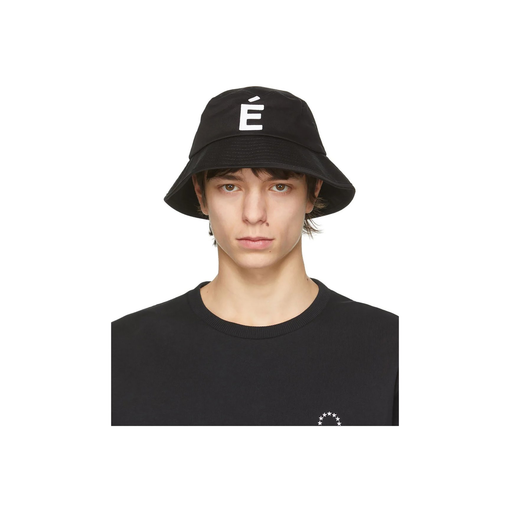 フロントにロゴやマークをあしらったデザインはバケットハットの定番。「エチュード(?tudes)」のバケットハットは、ブラックに大きめのホワイトロゴが際立ちます。