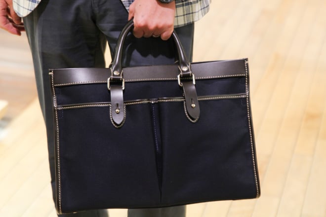 平野:質感が美しく見え、長持ちするので、ナイロンよりもレザー素材のものがおすすめです。見た目があまり派手でなくて、品のあるものが良いですね。黒がベーシックな色ですが、ネイビーも良いと思います。真っ黒のカバンですと、スーツも靴も黒という際に合わせづらく、堅苦しい印象になってしまうので、ネイビーを取り入れるのがおすすめです。黒以外のものを持つのが不安という方もいらっしゃるかもしれませんが、実際伊勢丹メンズ館では、ビジネスバッグに限れば黒と同じくらいネイビーも売れています。
