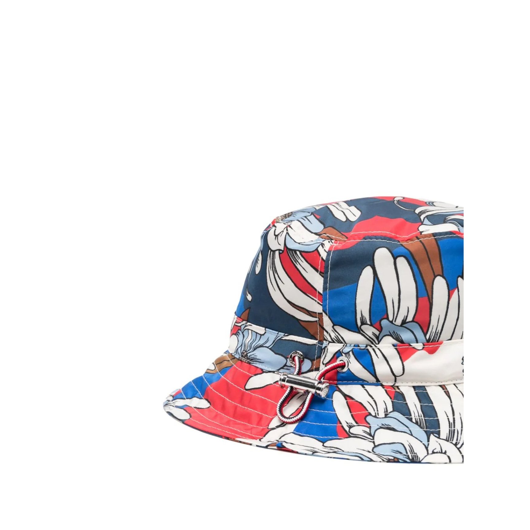アーティスティックなフローラル柄をまとう、「モンクレール(MONCLER)」のハット。ロゴと同色のカラーパターンで揃えた、鮮やかながら派手な印象に寄りすぎないアイテムです。ドローストリングでサイズ感の調節も可能。