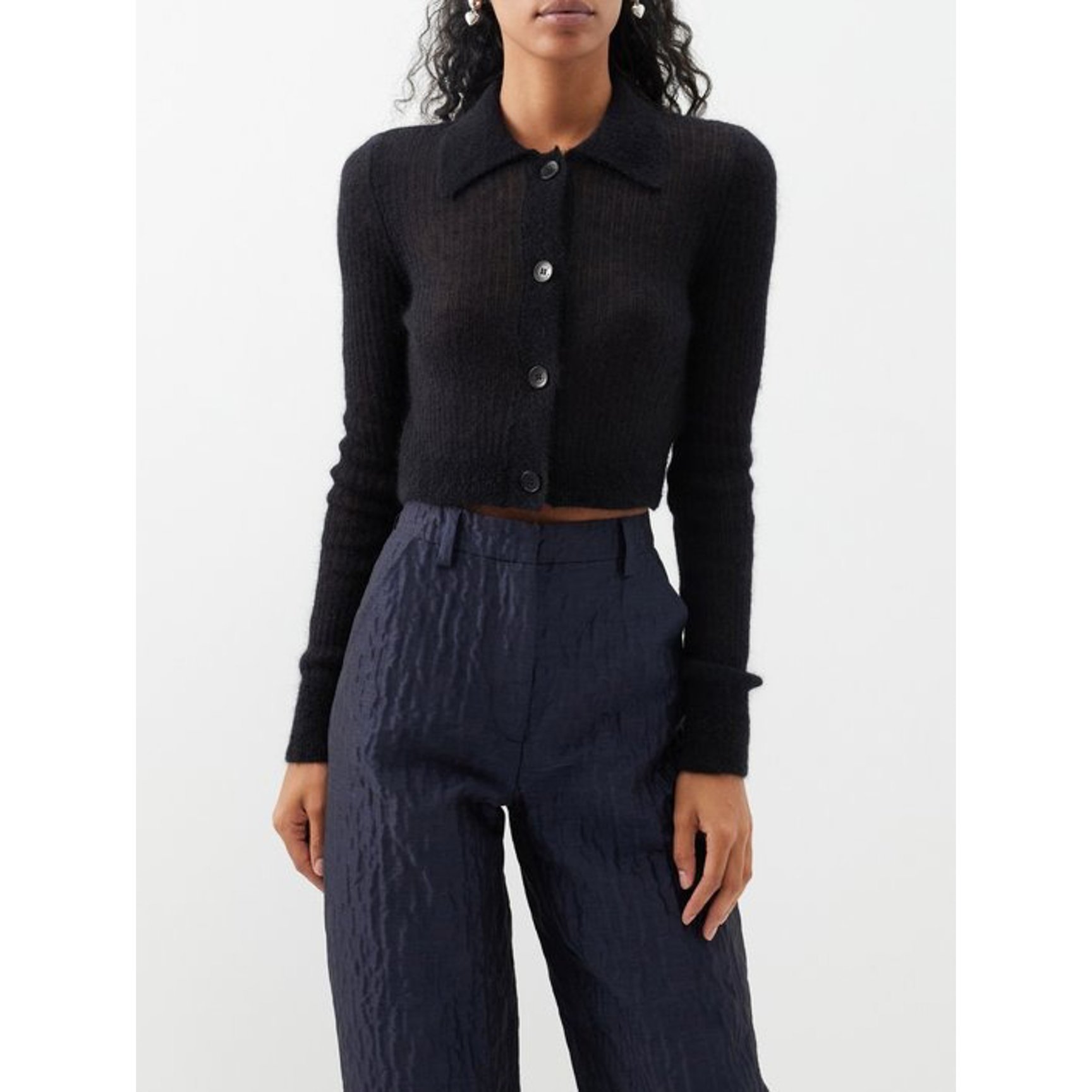 クロップド丈でコーディネートしやすい「セシリー?バンセン(CECILIE BAHNSEN)」のカーディガン。軽量モヘアを使用しており、ニュアンスのある表情が楽しめます。ハイウエストのパンツやスカート、ワンピースとも好相性。
