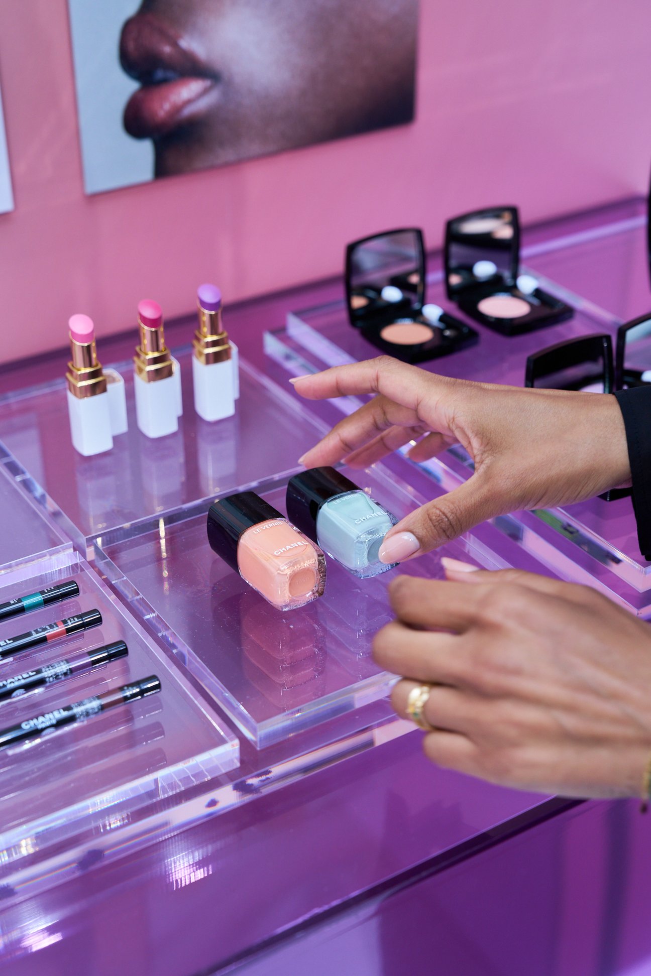 最初のコレクションは難しくもあり、また挑戦し甲斐があったという。アミィは「市場にないものを生み出しつつ、シャネルというブランドの本質と深く響き合う形にまとめることが肝要でした。これまで知られていなかった色調をどう見つけるのか、大きな挑戦でした」。シャネルという、偉大なメゾンの名を背負う以上、その威厳に傷をつけまいとする思いが、ときに創作の足かせにもなる。ただアミィはこうとも捉える。「シャネルの歴史を振り返ると、冒険を続けてきたブランドでもあります。先ほどの研究室の瓶の話でも分かるように、メインストリームではない道をシャネルが歩くと、それがメインストリームを形づくってきたのです」と続けた。