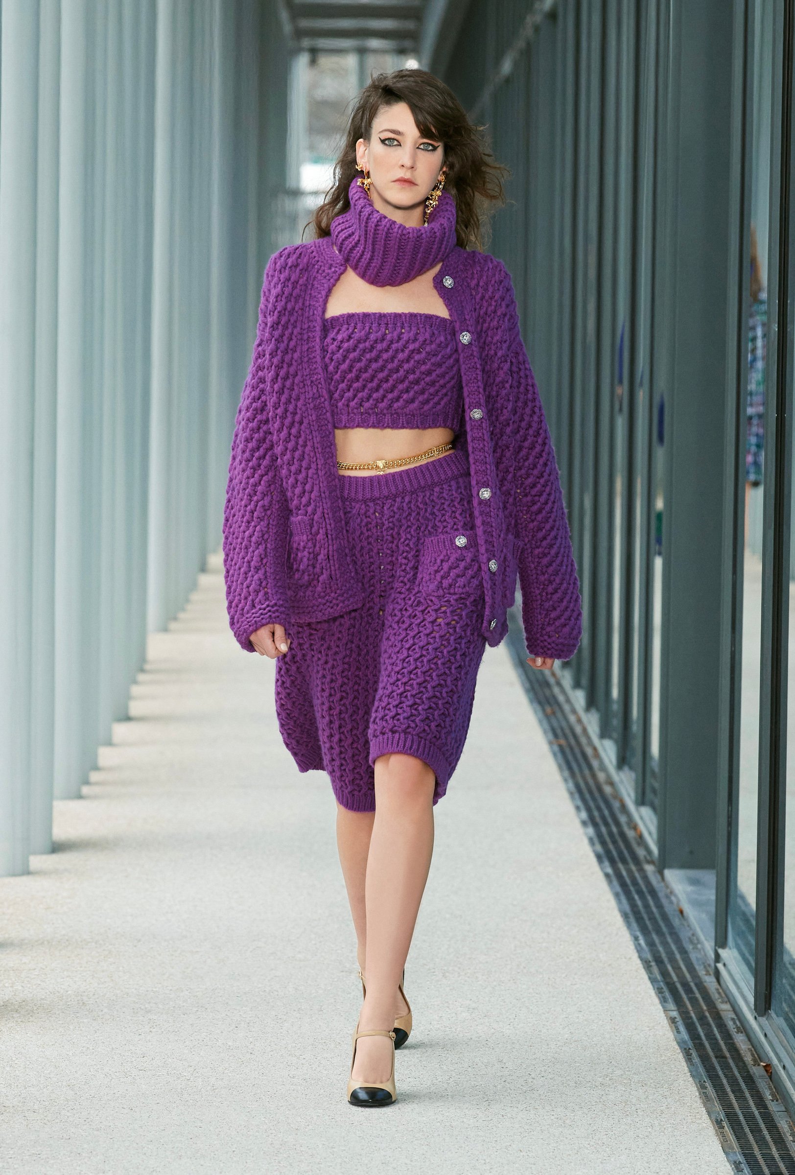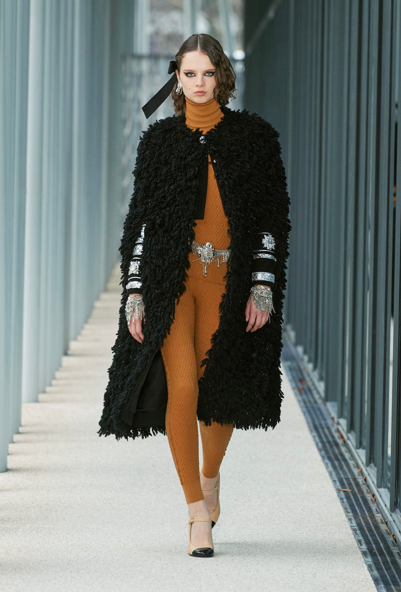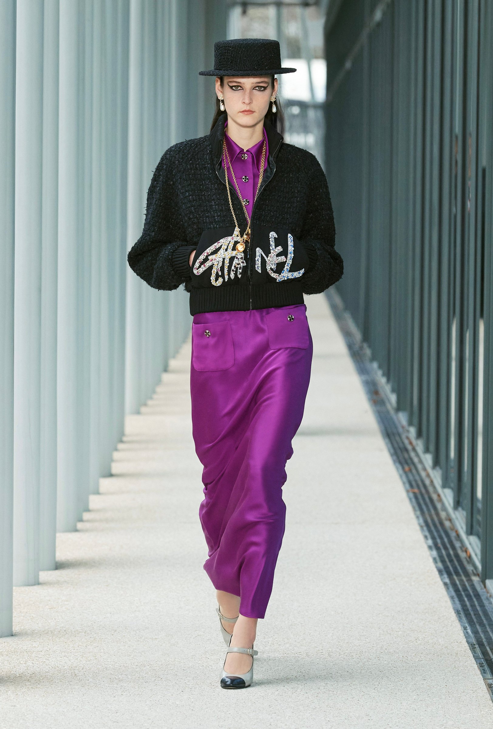 アーティスティック ディレクターのヴィルジニー?ヴィアール(Virginie Viard)が手掛ける今回のメティエダールコレクションは、都会的で洗練されたスタイルの随所に、職人たちが技巧を凝らした装飾が施されている。ファーストルックをはじめとするシルバーのスパンコール刺繍はアトリエ モンテックスが手掛けたもので、le19Mの白い系を張り巡らせたような外観からインスピレーションを得ているという。
