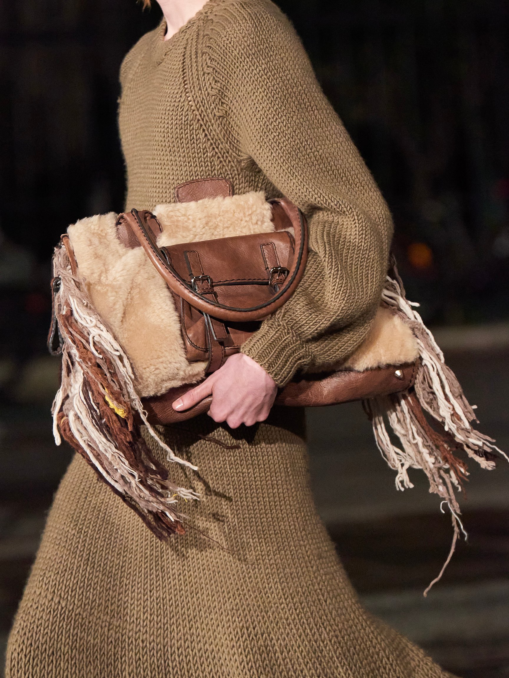 注目は、「Edith」バッグ。ガブリエラが持った初めてのラグジュアリーブランドのバッグが「Edith」だった縁もあり、今回のコレクションではリサイクルカシミヤやリサイクルジャカードのミニバッグとトートバッグ、ドクターズバッグとして再登場した。このほか、Edithのヴィンテージバッグ50点が、今回のコレクションの余剰生地を使用し制作されるという。