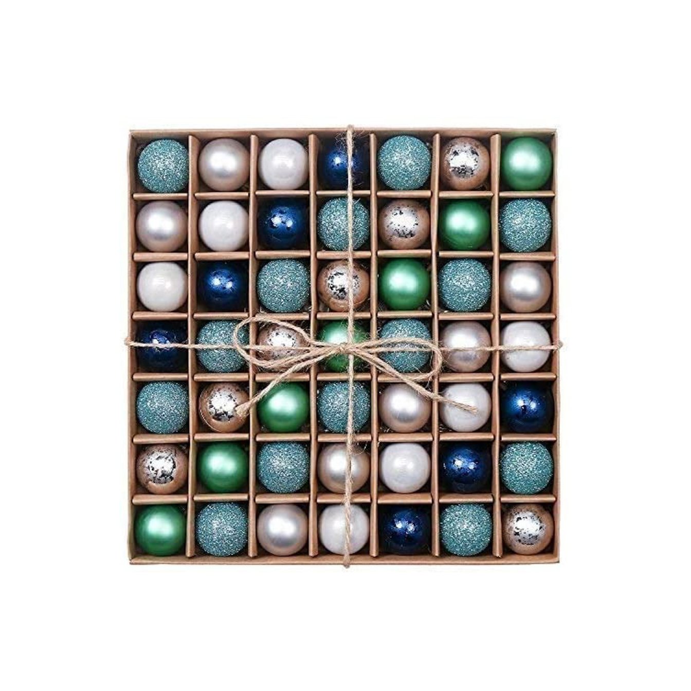 ミント?ブルー?シルバーなど、クールなブルー系のカラーリングでまとめられたオーナメントボールのセット。ちょっとしたデコレーションに丁度いい、3cmのボールが49個入ったバリューパックです。グリッターやマットなど、表面のデザインも様々なタイプがミックスされています。