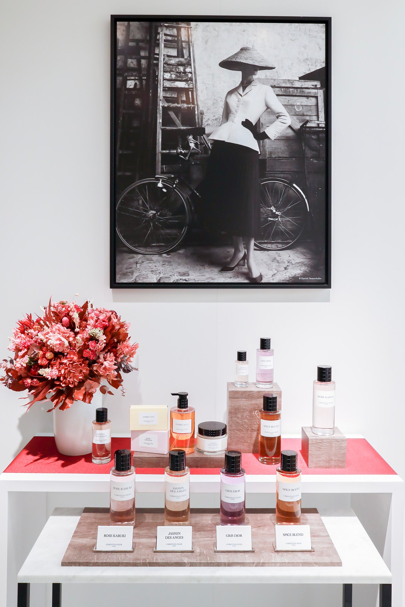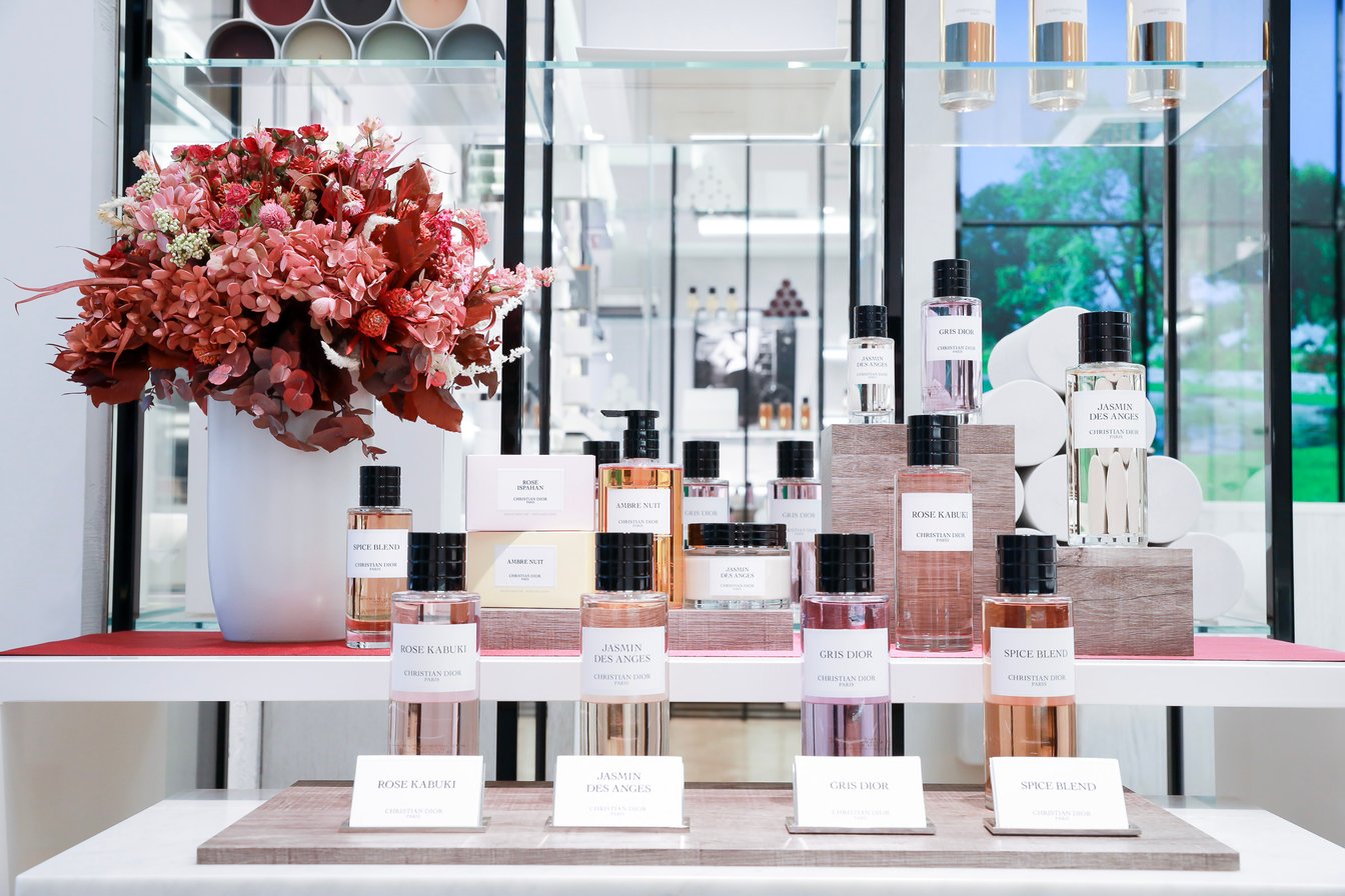 クリーンでモダンな雰囲気の店内にはディオール パフューマー クリエイターのフランソワ?ドゥマシー(Francois Demachy)が手掛けた20以上のオードゥ?パルファンのほか、キャンドルやボディクリーム、ソープなどのフレグランスコレクションが並びます。パトリック?デマルシェリエ(Patrick Demarchelier)が撮影したポートレイトが壁に飾られた洗練された空間です。