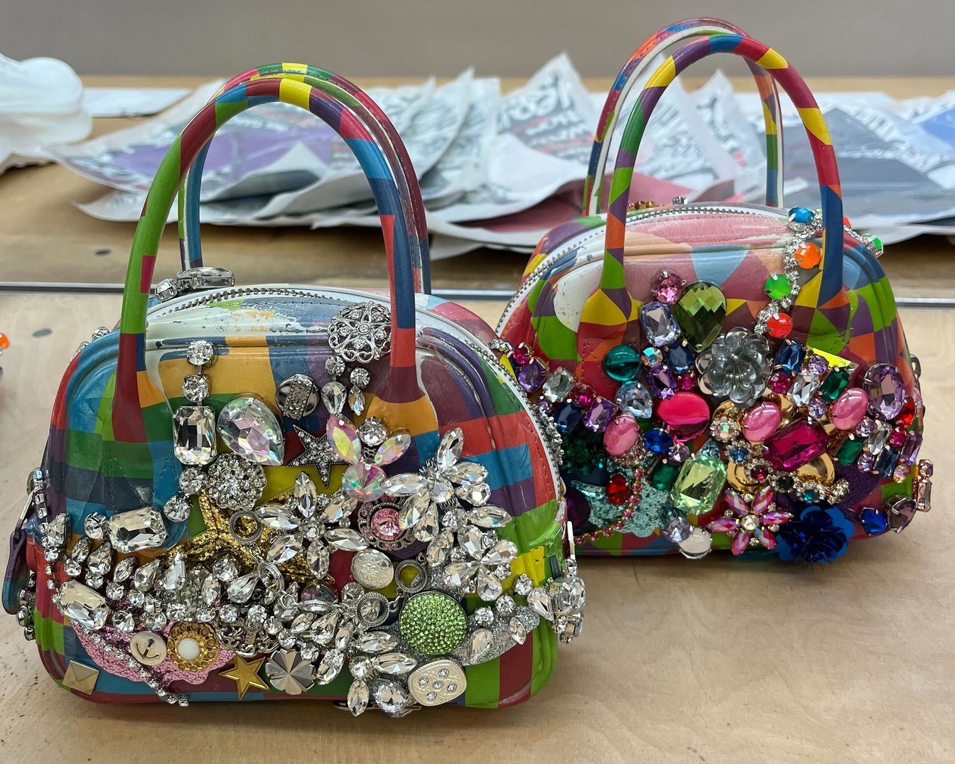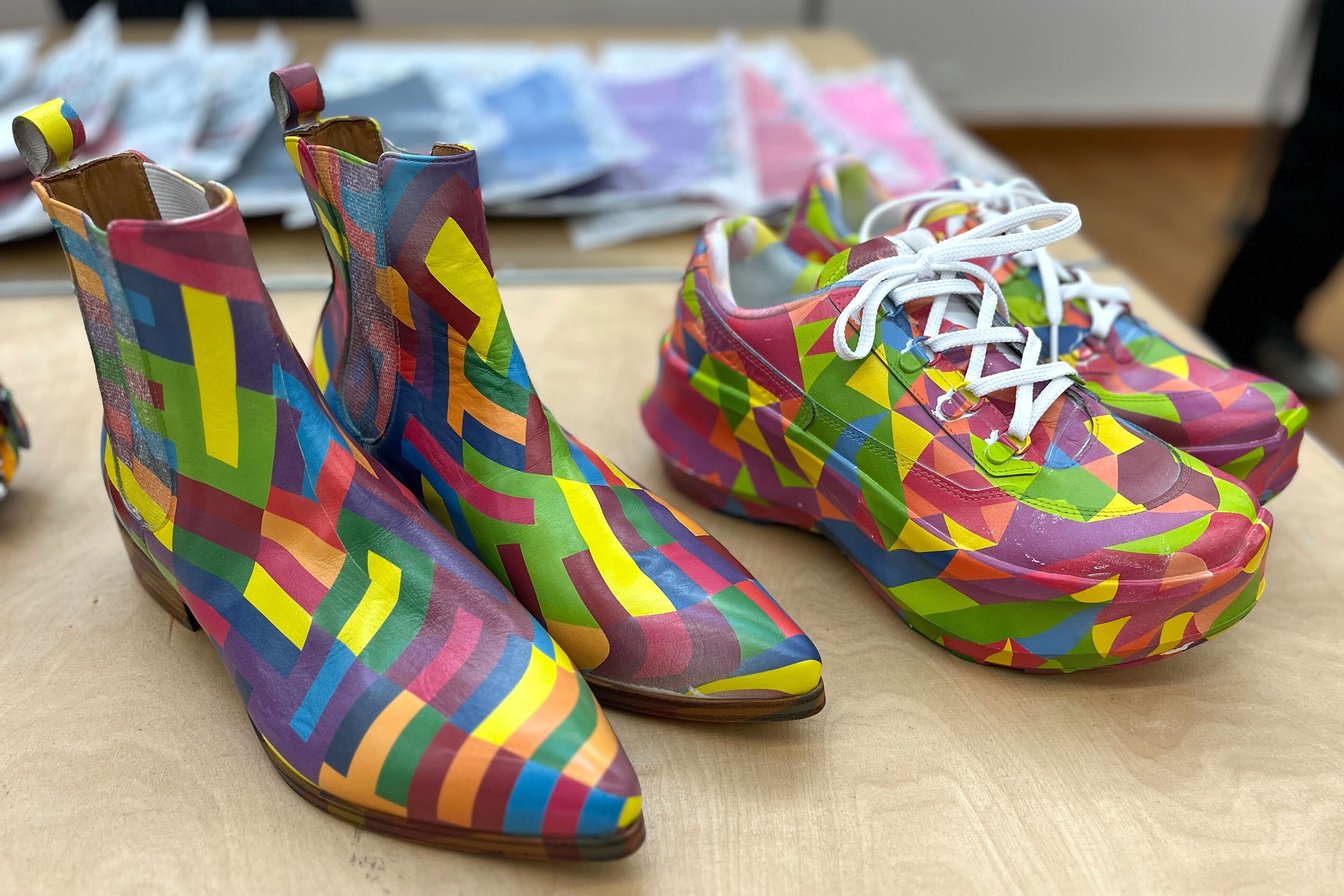 なお翌日から開催された展示会では、ビジュー付きのミニバッグや、マルチカラーのスニーカーとブーツも披露されていた。
