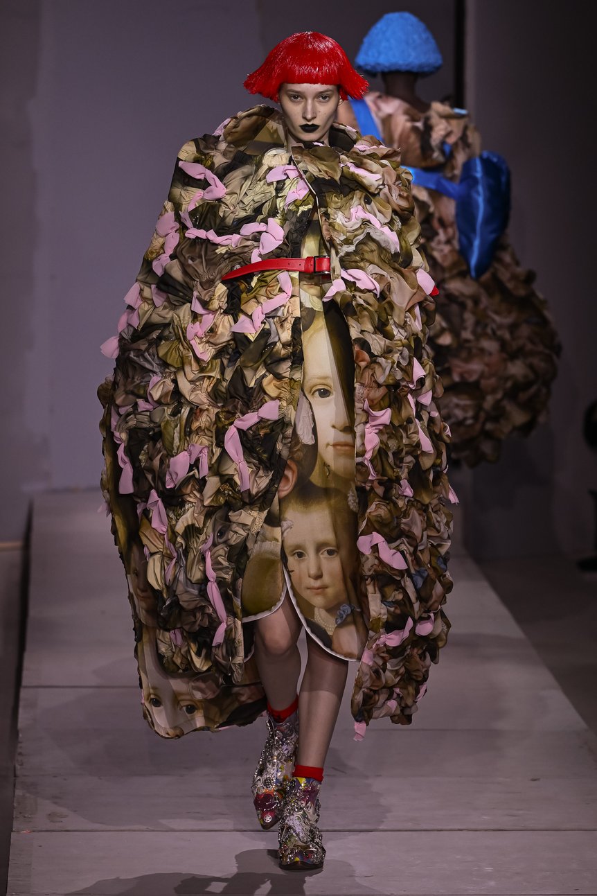 ショーの後に送られてきたコレクションテーマに、川久保玲の思いを示す一文があった。その言葉のとおり、ランウェイのグルーミー(=憂鬱、陰気)な空気を切り裂くように、色鮮やかなルックがゆっくりと現れた。