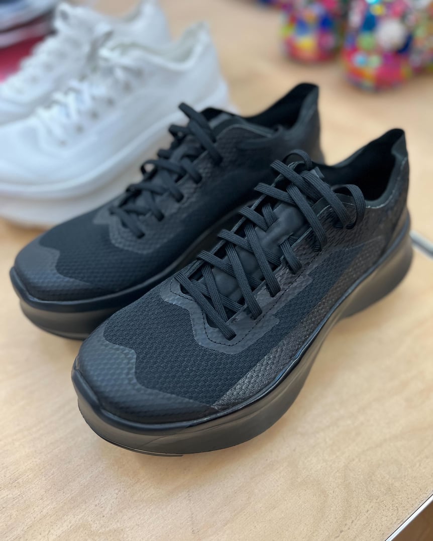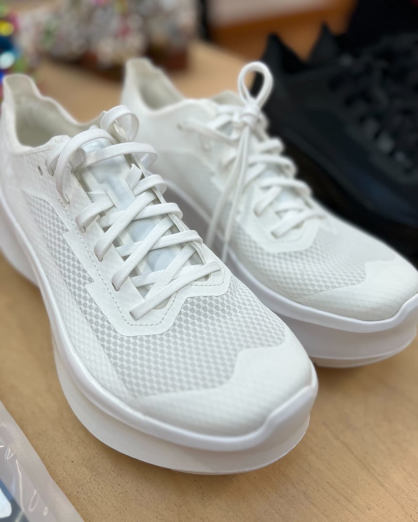 さらに、ランウェイでは登場しなかったが、サロモンとのコラボスニーカーの新型も登場。プラットフォームの厚底ラバーソールは継続しつつアッパーが一新し、ホワイトとブラックが展開される。